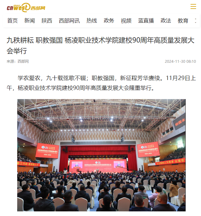 学农爱农,九十载弦歌不辍;职教强国,新征程芳华赓续。11月29日上午,杨凌职业技术学院建校90周年高质量发展大会隆重举行。