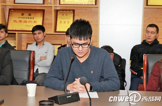 来自俄罗斯的语言学留学生叶莲娜和来自哈萨克斯坦的专业留学生米拉斯代表全体留学生进行发言。他们对学院为他们提供的学习机会、条件和生活环境,老师们的热情接待表示感谢。并表示将珍惜这次学习机会,严格遵守中国的各项法律法规和学校的各项校纪校规,了解中国的风俗习惯和传统文化,在以后的学习中,提高汉语水平和专业技术,深入了解中国的历史和文化,实现最初的留学中国梦。
