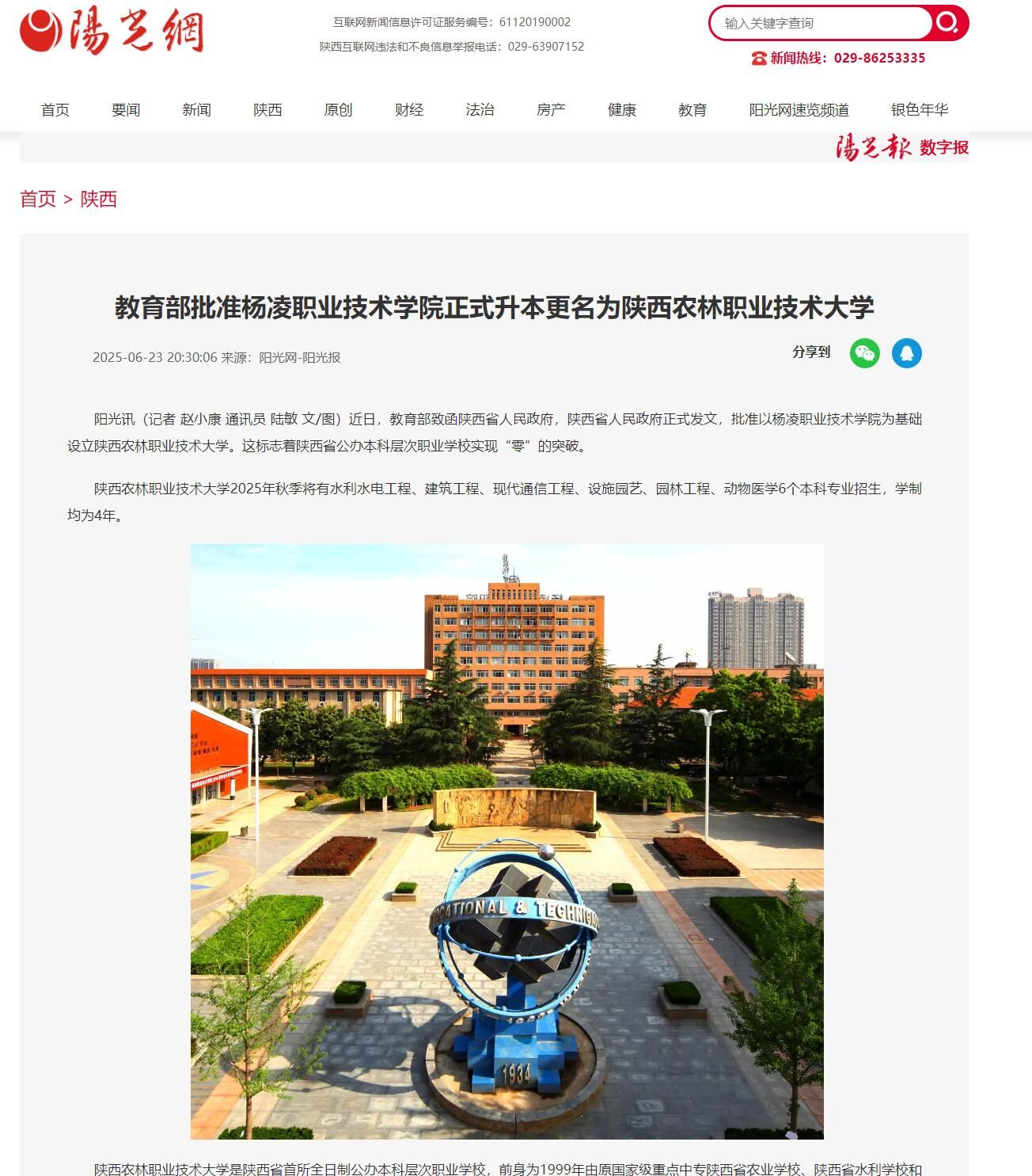 阳光讯(记者 赵小康 通讯员 陆敏 文/图)近日,教育部致函陕西省人民政府,陕西省人民政府正式发文,批准以杨凌职业技术学院为基础设立Beat365中文官方网站。这标志着陕西省公办本科层次职业学校实现“零”的突破。