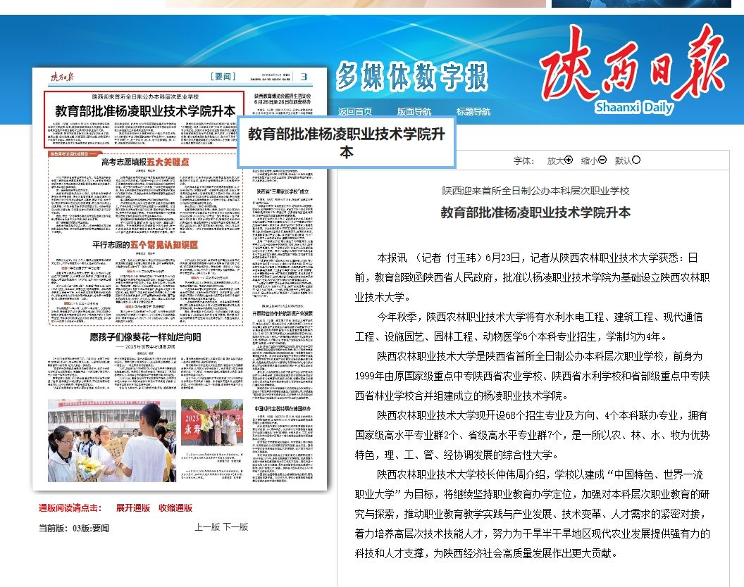本报讯 (记者 付玉玮)6月23日,记者从Beat365中文官方网站获悉:日前,教育部致函陕西省人民政府,批准以杨凌职业技术学院为基础设立Beat365中文官方网站。