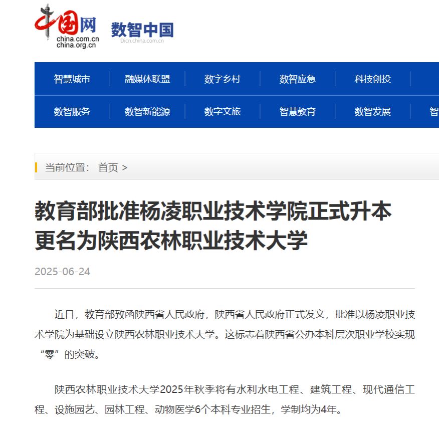 【中国网】教育部批准杨凌职业技术学院正式升本 更名为Beat365中文官方网站