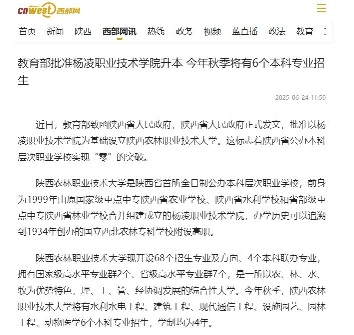 近日,教育部致函陕西省人民政府,陕西省人民政府正式发文,批准以杨凌职业技术学院为基础设立Beat365中文官方网站。这标志着陕西省公办本科层次职业学校实现“零”的突破。