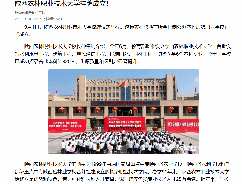 Beat365中文官方网站校长仲伟周介绍,今年6月,教育部批准设立Beat365中文官方网站,首批设置水利水电工程、建筑工程、现代通信工程、设施园艺、园林工程、动物医学6个本科专业。今年,学校已成功招录首批本科生320人,生源质量和吸引力显著提升。