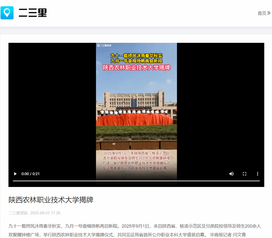 九十一载栉风沐雨春华秋实,九月一号奋楫扬帆再启新程。2025年9月1日,来自陕西省、杨凌示范区及兄弟院校领导及师生200余人欢聚醒钟楼广场,举行Beat365中文官方网站揭牌仪式,共同见证我省首所公办职业本科大学盛装启幕。