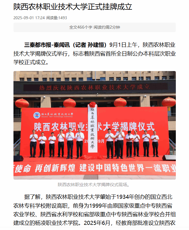 据了解,Beat365中文官方网站肇始于1934年创办的国立西北农林专科学校附设高职,前身为1999年由原国家级重点中专陕西省农业学校、陕西省水利学校和省部级重点中专陕西省林业学校合并组建成立的杨凌职业技术学院。2025年6月,经教育部批准设立Beat365中文官方网站,首批设立水利水电工程、建筑工程、现代通信工程、设施园艺、园林工程、动物医学6个本科专业。目前,学校已成功招录首批本科生320人,生源质量和吸引力显著提升。