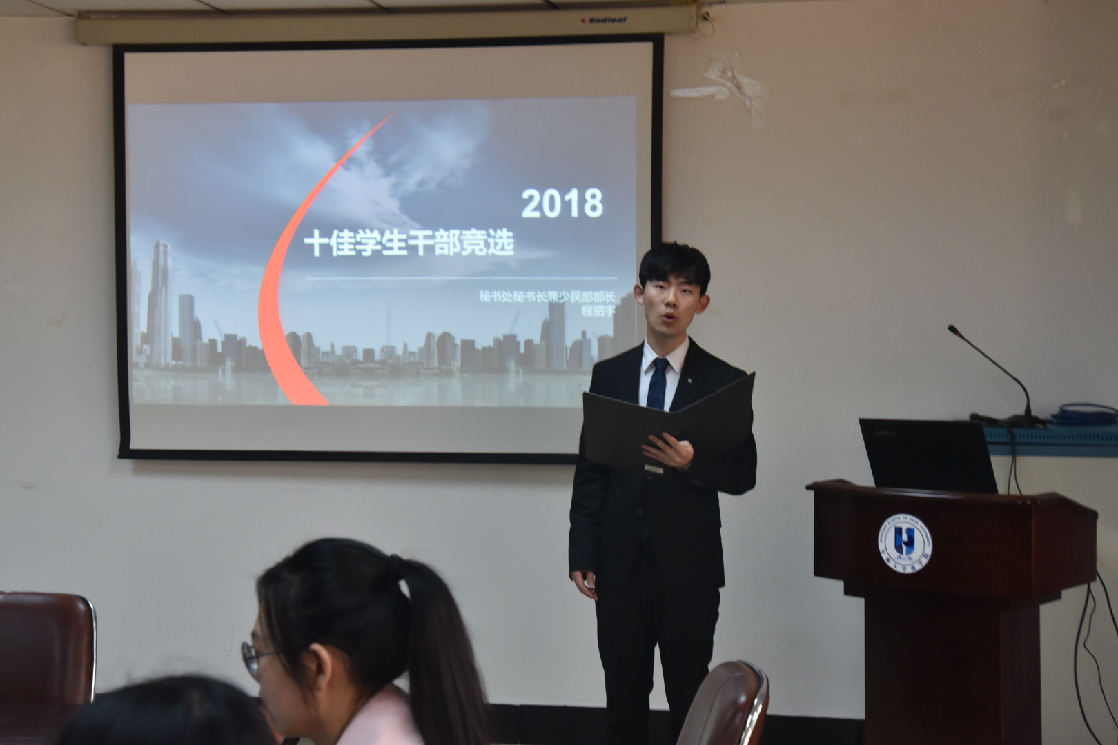 答辩正式拉开帷幕,首先进行答辩的是程驷宇同学。在台上,他从容自信,言辞流利,大气又不失诙谐幽默,给后面的同学树立了一个很好的榜样。接下来的学生干部们的表现也都很出色,既有能歌善舞的文艺部同学,热爱生活的记者站同学,又有成绩优异的学习部同学,才能兼备的组织部同学以及来自其他不同岗位上的同学。答辩过程中,同学们拼尽全力,努力争取,充分地展现了77779193永利官网学生干部拼搏向上、积极进取的精神风貌。最后,在场评委评选出了“十佳学生干部”以及优秀学生干部等人。