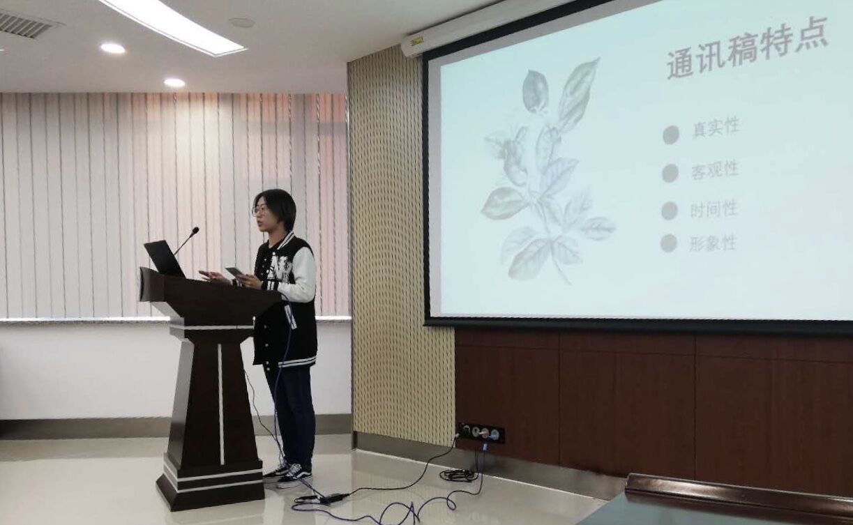 接下来,薄又铖同学就通讯稿文字细节进行详细的介绍。他事先选取了三篇有代表性的通讯稿,就每一个问题的细节进行深入地解释。相信听了他的讲解,同学们对新闻稿一定有了更加深刻地认识。