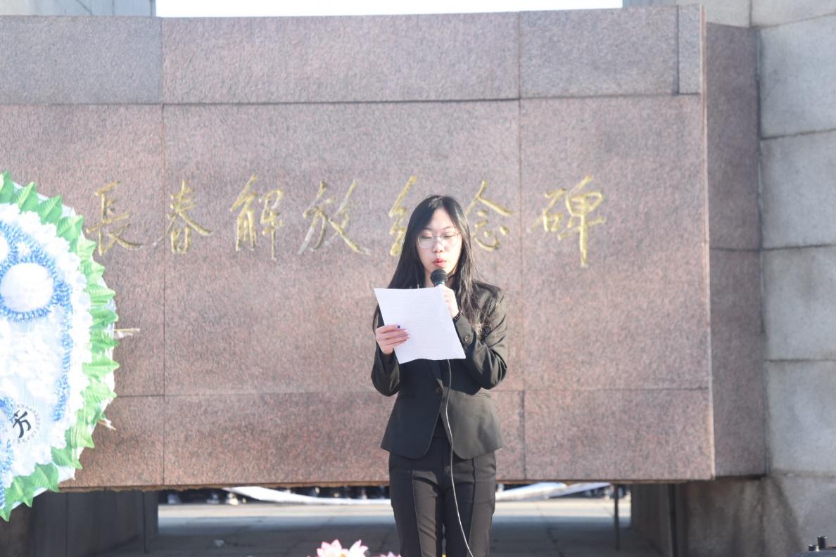 随后由2016级党员代表宋佳桐同学发言,她激励同学们要坚定信念、志存高远、脚踏实地、勇作时代弄潮儿。紧接着由2017级入党积极分子刘津铭同学上台发言,他鼓励同学们反思悲伤,铭记悲伤,并庄严承诺像先辈学习,为祖国的建设和发展奉献自己的青春和热血。最后,由张笑铭同学带领全体参与者庄严宣誓,“以我壮志豪情,创造崭新未来;以我火红青春,建设锦绣中华!”庄严纪念碑下的锵锵的誓言彰显了同学们对先烈的无限追思与对完成伟大使命的坚定信念。