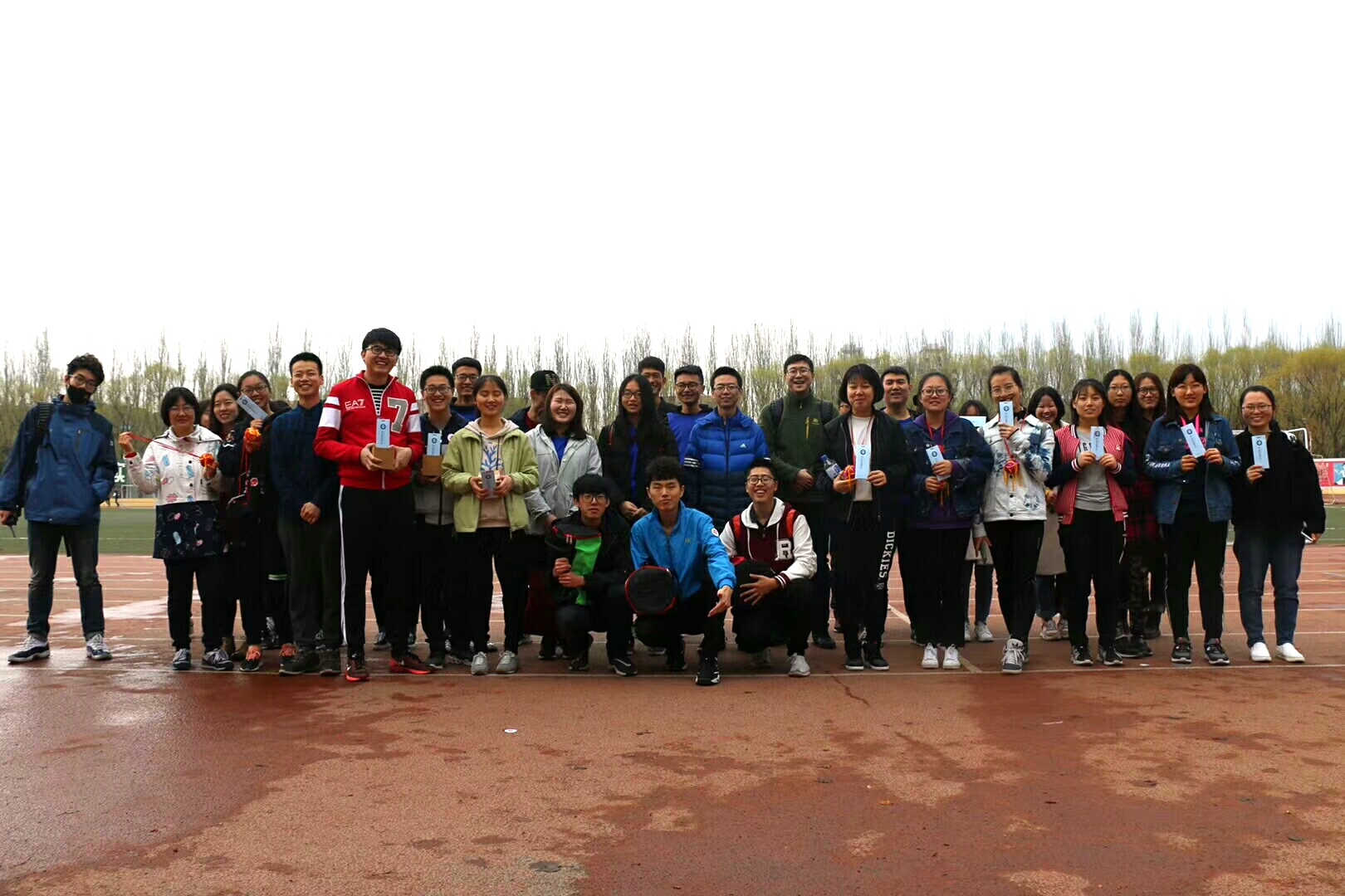 首先,由主持人为大家宣读比赛相关要求以及注意事项,接着,为使参赛者对活动更加熟悉,工作人员为大家进行了活动流程演示,之后,伴随着大家激动的心情,比赛正式开始。由于天气原因,上午的比赛进行到一半便开始下雨,但是无论是活动参与者还是现场工作人员都决定冒雨将活动继续下去直至结束,恶劣的天气并没有打击大家的积极性,雨中同学们认真比赛的样子令人感慨。下午的空气带着雨后的湿润与清新,比赛正常进行,参与者们带着自信的笑容和必胜的决心,齐心协力,共同完成所有项目。最后,据统计,第十一支队伍以两分二十八秒的总时长取得绝对胜利,获得一等奖;第二组和第九组获得二等奖;第三组、第四组以及第十组获得三等奖,之后,由主办方为各队伍颁发奖品并合影留念,至此,77779193永利官网第一届少民体育节活动圆满结束。