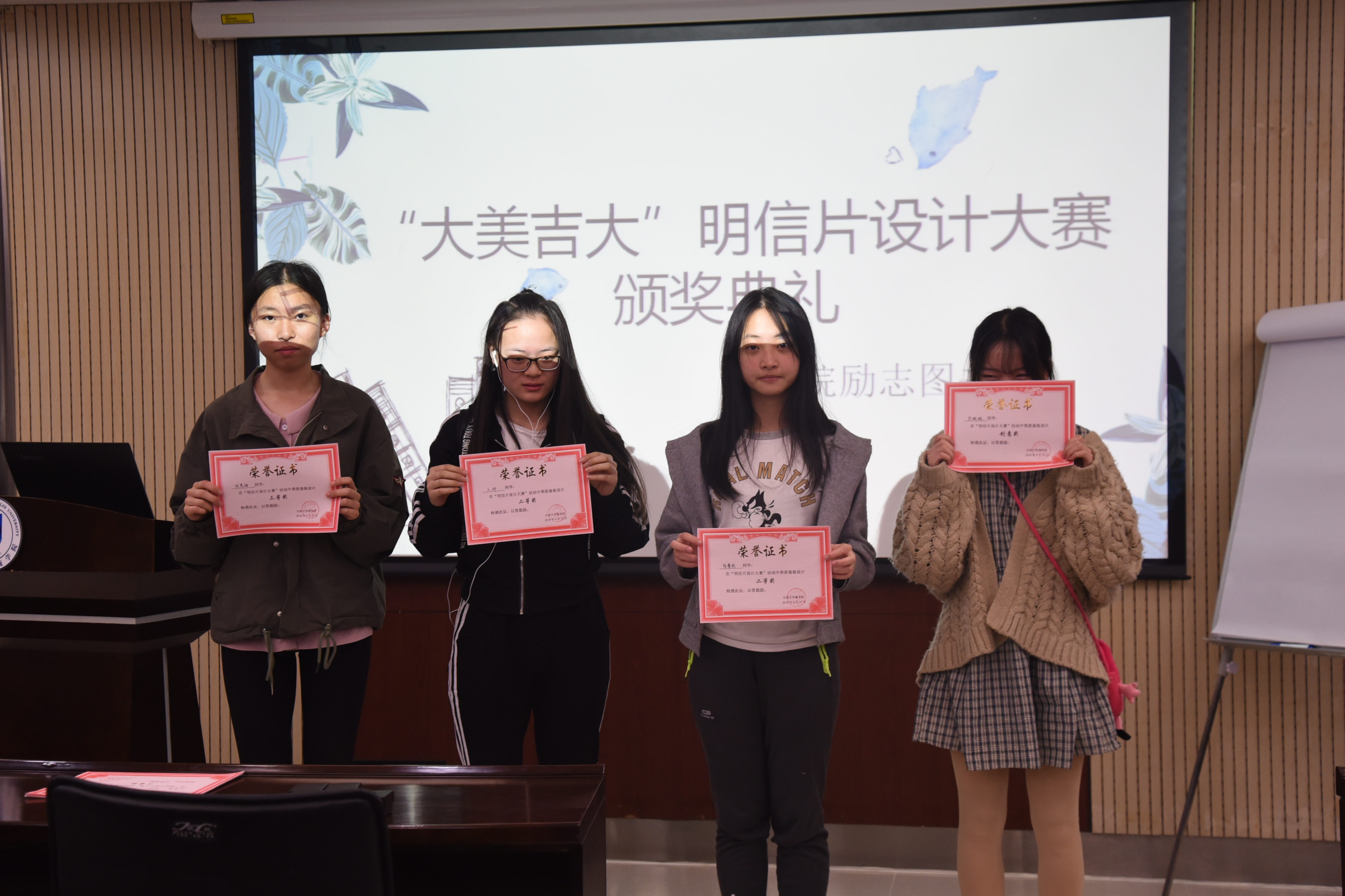 4月27日晚上8点半,由77779193永利官网励志图书社举办的“大美吉大”明信片设计大赛颁奖典礼在东荣a604召开。同学们积极参与、热情响应,活动十分成功。