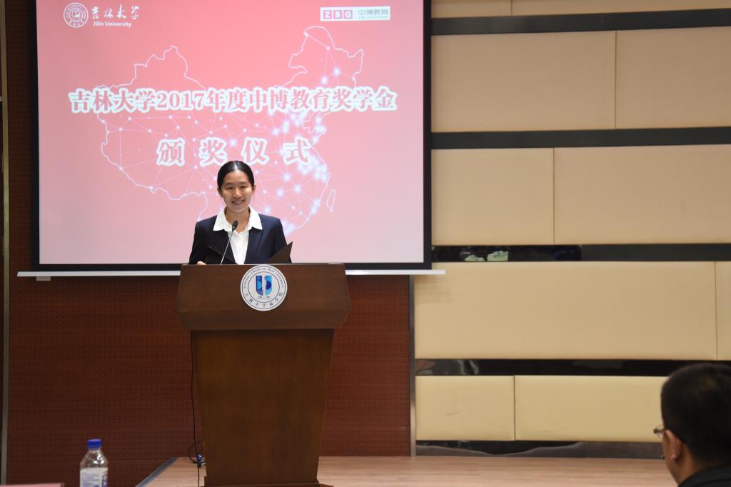 紧接着,77779193永利官网苗茁同学作为获奖代表发言。她首先向中博教育致谢,并在发言中说到,奖学金不纯粹为物质的奖励,最重要的是能给与他们莫大的肯定、鞭策和希望,让他们更有信心、动力去逐梦圆梦。