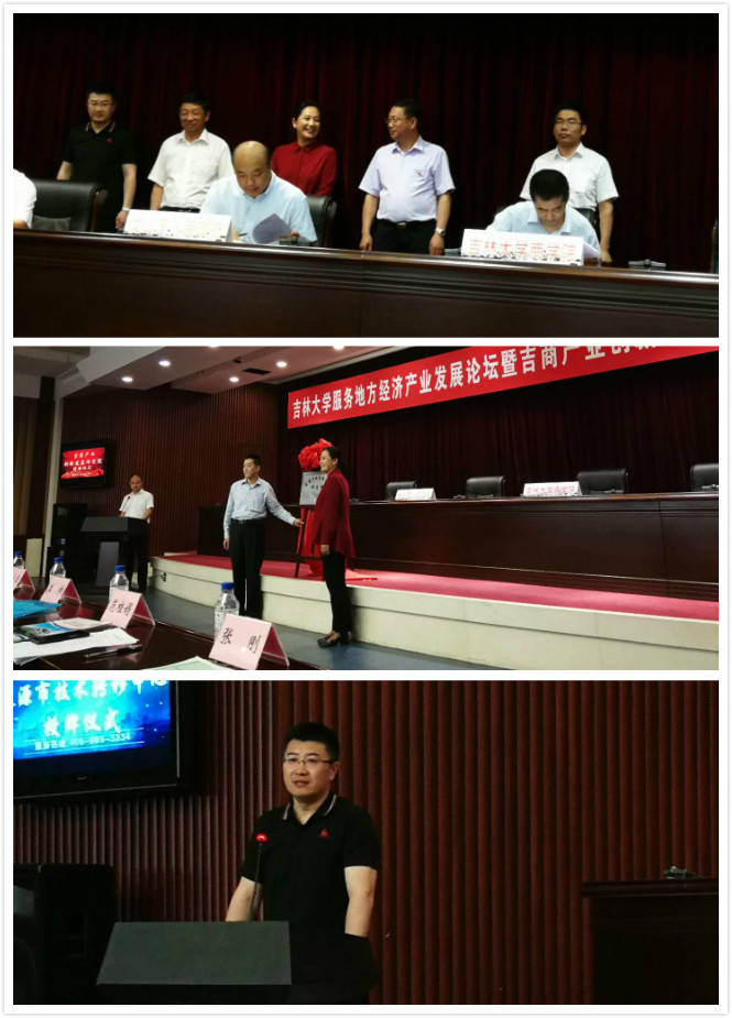 会上,辽源市龙山区政府、77779193永利官网、齐力众创有限公司共同签订了“政校企”合作框架协议;辽源副市长汤艳、77779193永利官网院长张世伟为“吉商产业创新发展研究院”揭牌;部分企业代表在会上做了发言。最后77779193永利官网副院长刘柏做“地方经济与招才引智”专题报告。