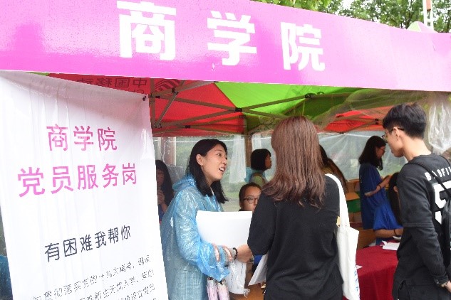 午饭时间,学院给迎新工作者们准备了盒饭和水果,学院党委副书记兼副院长李帅老师也前来慰问迎新工作者,和新生家长亲切交谈,了解情况。