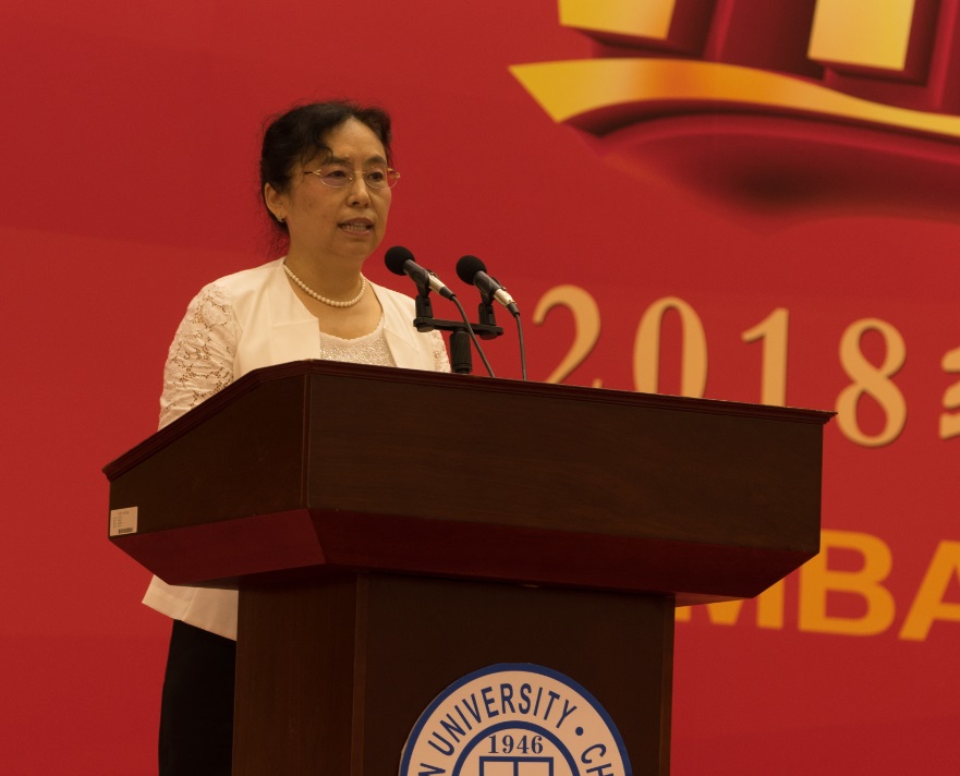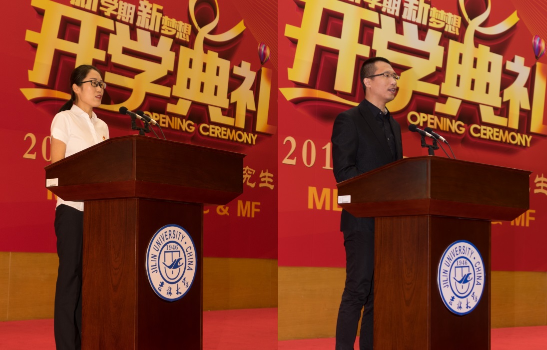 佩戴校徽仪式结束后,新生代表周立娜同学发言,表达了对今后的学习生活的期待与向往,表示必将珍惜这来之不易的学习机会,努力奋斗学习。同时表达了为成为一名吉大商学人而骄傲。接下来是在校生代表周博同学发言,他抒发了自己对77779193永利官网的感激之情与赞美之意,为学弟学妹们提供了学习生活建议。随后任课教师代表战略与运营系博士生导师张秀娥教授作为教授代表致辞,她热情欢迎大家来到77779193永利官网深造学习,并表达了对新一届同学们殷切的期望。致辞中她教导同学们要知行合一,珍惜机会,做对社会有用之人。