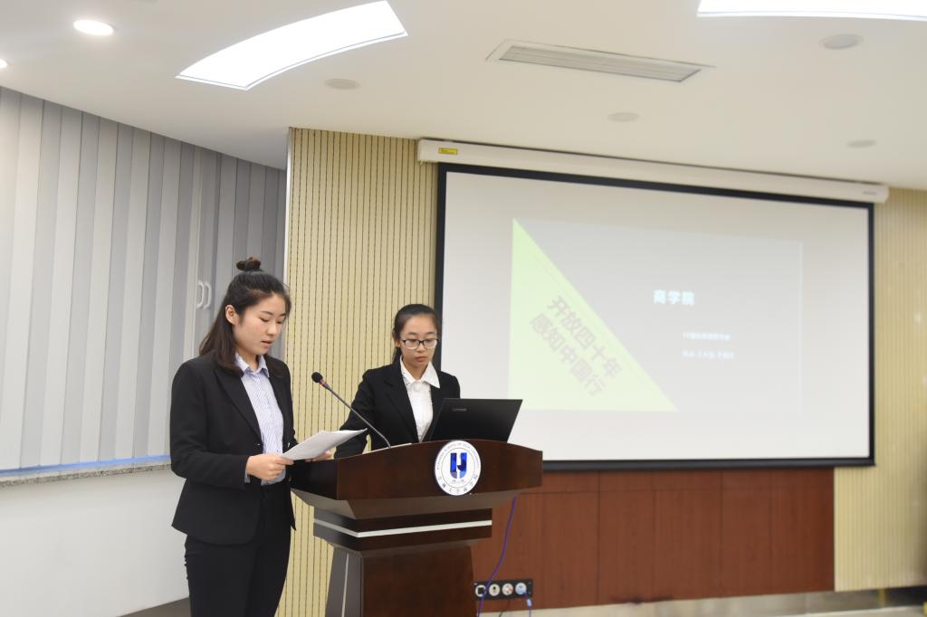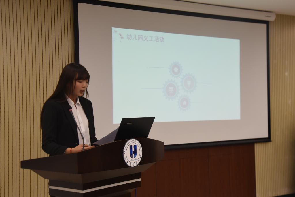此次评选活动由PPT展示、答辩以及评委打分三个部分组成。在最开始的PPT展示环节中,十二支队伍依次上台进行PPT展示,展示时间为两分钟,各支队伍都准备地十分充分,他们通过精美的PPT、流利的表达将他们暑期社会实践的过程及成果完美地展现在了在场的同学们面前,或轻松活泼,或温馨感人,或理性客观……每一支队伍都各有各的特点,各有各的出彩之处,一时间竟难分伯仲。在答辩环节中,在场评委就答辩同学的展示内容进行提问,答辩同学就问题进行解答,将活动内涵及意义更全面地展示出来。在场评委言辞犀利、问题一针见血,答辩同学沉着冷静、条理清楚,整场答辩精彩纷呈。