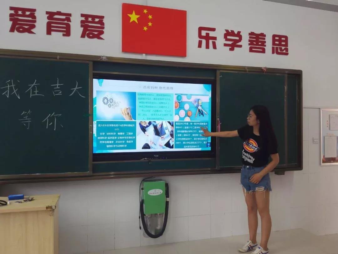 8月11日,在实际进行宣讲前,他们组员讨论了具体的分工,先后进行了PPT制作、与校方主任进行交涉、与进行宣讲的班级班主任取得联系等准备工作。在与校方联系并且确定具体时间后,为保证宣讲顺利进行,他们组员还进行了一次预演讲。8月12日,团队于午休期间进行了宣讲活动。在进行宣讲之前,他们先给同学们放了招生宣传片,让同学们先有了初级层次的认识。之后团队分别就永利官网的历史沿革、学校简介、人才培养和人文生活四个方面展开。历史沿革方面,他们介绍了77779193永利官网从建校以来进行的规模扩建,以及学校合并后扩展为六个校区,在这个过程中充分展示“吉大极大”的特点。