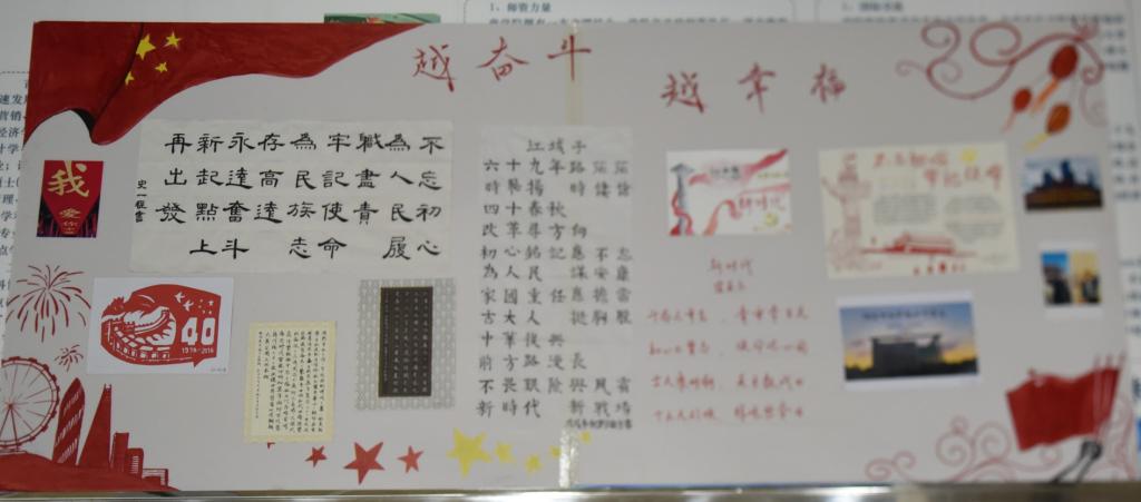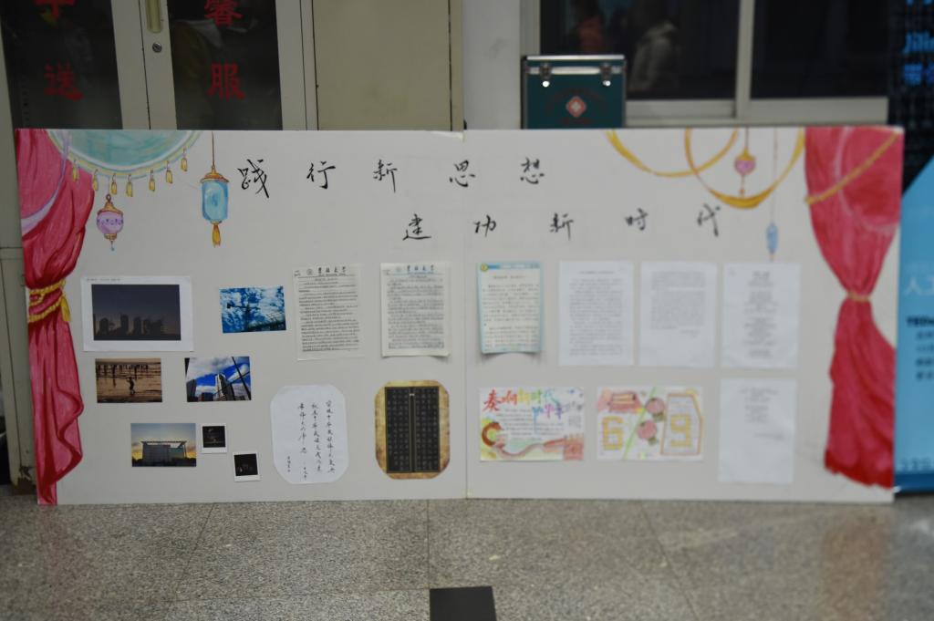 于10月1日放假前,宣传部向2017级和2018级同学下达了征集作品任务,同学们积极响应,踊跃参加。大家利用十一假期的机会,观察感受时代进步给家乡带来的变化,并结合习近平总书记的讲话精神,将自我体悟与感想结合自己的特长以书画、摄影作品等形式呈现出来。返校之后,18级的同学们将这一件件的作品集中起来做成展板,并将展板展于第三教学楼一楼和东荣大厦,供同学们浏览。