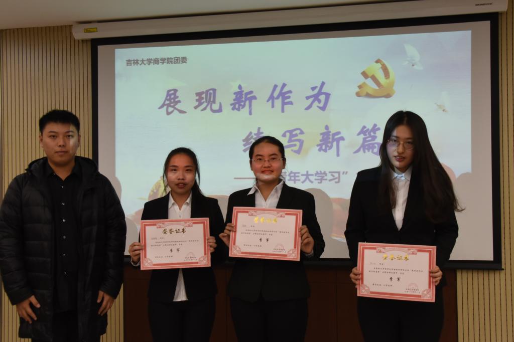 活动伊始,由主持人向在场参赛同学介绍本次演讲比赛的评委及相关评选规则。之后,由18级共22名参赛选手按照班级的顺序依次上台进行演讲,内容主要围绕本次“青年大学习”学习内容及学习感悟。评委根据参赛同学的演讲内容及现场表现给出评分,根据评分最终得出本次演讲比赛的结果。比赛过程中,选手们从容不迫,慷慨激昂,挥洒自如地展开演讲,字里行间都包含着真挚的情感,用饱满的激情,朴实的言语,表达了他们在此次“青年大学习”中的感悟。22名参赛选手结束演讲后,学生会副主席黄杰上台就此次演讲比赛中同学们的表现进行综合评价并提出了一些改进的建议,同时黄杰也表示希望同学们可以在今后的学习生活中参与更多的活动,在活动中得到成长。最后,本次演讲活动现场得出第一名一位,第二名两位,第三名三位,由评委颁奖并合影留念。