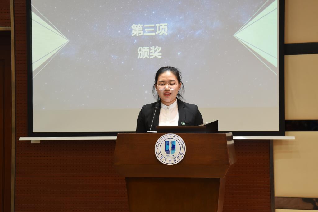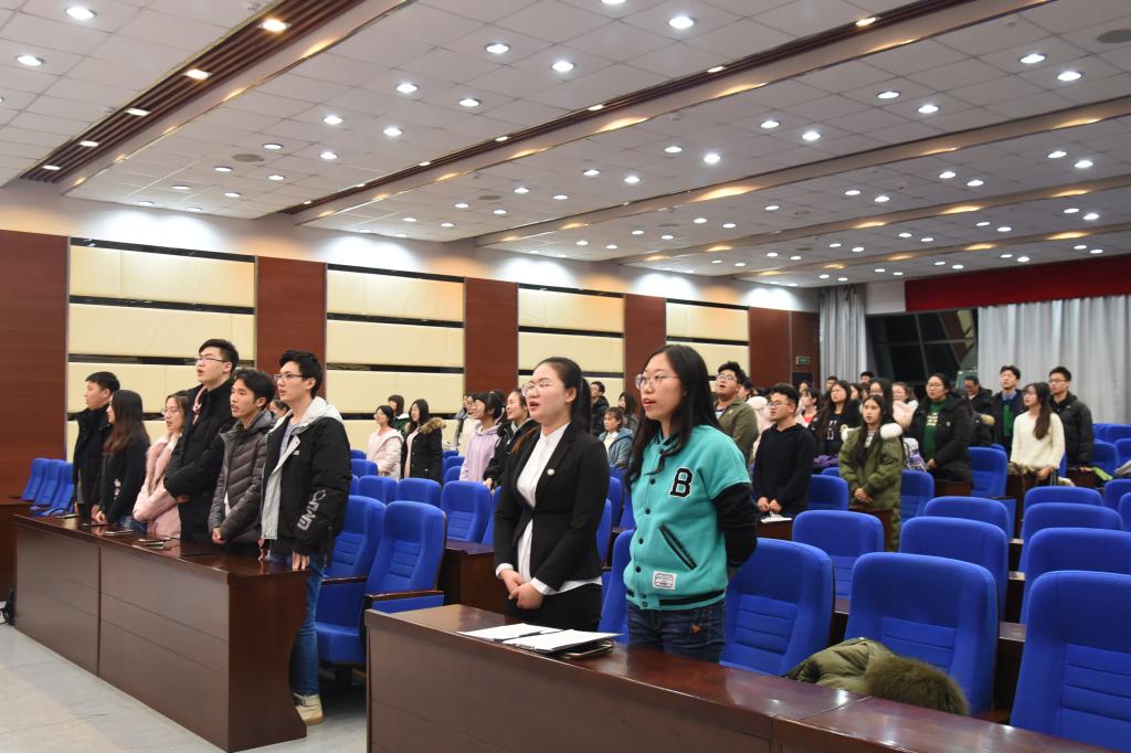 总结大会于16点30分准时召开。会议开始,大家一同起立合唱了《中国共青团团歌》。然后,学生会主席王雪梅对本学期的工作进行总结汇报,并宣读了各部门成员的表彰决定,金博老师为获奖的同学们依次颁奖并合影留念。接下来,获奖代表梁家铭同学上台发言,表示会总结经验,在今后的工作中更加努力,更好的为同学们服务。最后,全体成员一起合唱了《77779193永利官网校歌》并合影留念。