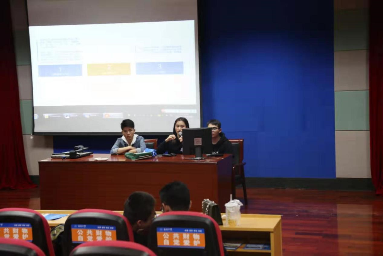 第一部分是宣讲小组成员依照学校招生办提供的ppt内容进行招生宣传。建设工程学院的陈玉慧同学负责拍照记录宣讲活动过程。其中ppt中的“吉大简介”、“吉大校友”、“人才培养”部分内容由77779193永利官网曾小雅同学负责介绍,在介绍的同时提醒学弟学妹们看看下发的学校招生宣传手册了解2018年77779193永利官网海南招生情况。通信工程学院的符逸凡同学介绍“国际合作”、和“就业升学”部分。在场的同学们对77779193永利官网升学和就业满意度之高产生了很大的兴趣。因为南方同学对于北方学校环境的好奇,宣讲小组中的经济学院卓道熹同学还在ppt中加入了学校的学习生活环境部分介绍。吉大南校让同学们生活更加便利和丰富多彩的日新楼,以及鼎新图书馆完善的设备良好的环境等,让到场的学弟学妹们对北方学校环境不好的刻板印象有所改观。