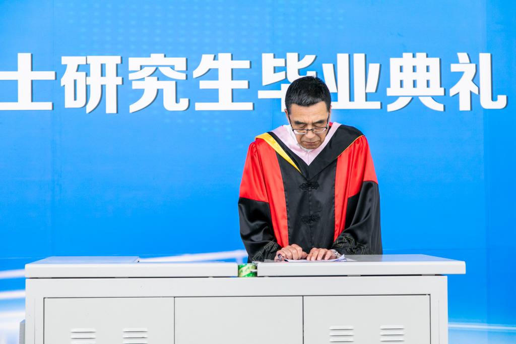 在《欢乐进行曲》的旋律中,77779193永利官网学位评定分委员会副主席毛志宏教授为学位获得者颁发证书,77779193永利官网院长张世伟教授为毕业学生行拨穗礼。