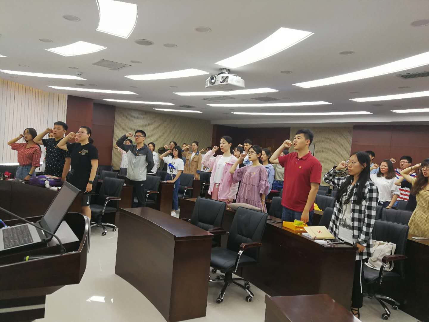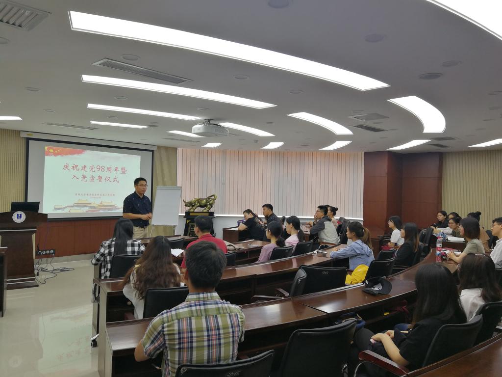 为了庆祝中国共产党建党98周年,同时也为了强化党员意识,提高党员质量以及提升党支部活动的仪式感,77779193永利官网本科生第一党支部于7月1日下午一点半在东荣大厦A604会议室隆重举办了庆祝建党98周年暨入党宣誓仪式。参加本次大会的人员有77779193永利官网党委副书记兼副院长李帅老师,77779193永利官网本科生第一党支部书记刘天目老师,以及宋佳桐等12名正式党员和29名新发展的预备党员。大会由刘天目老师主持。