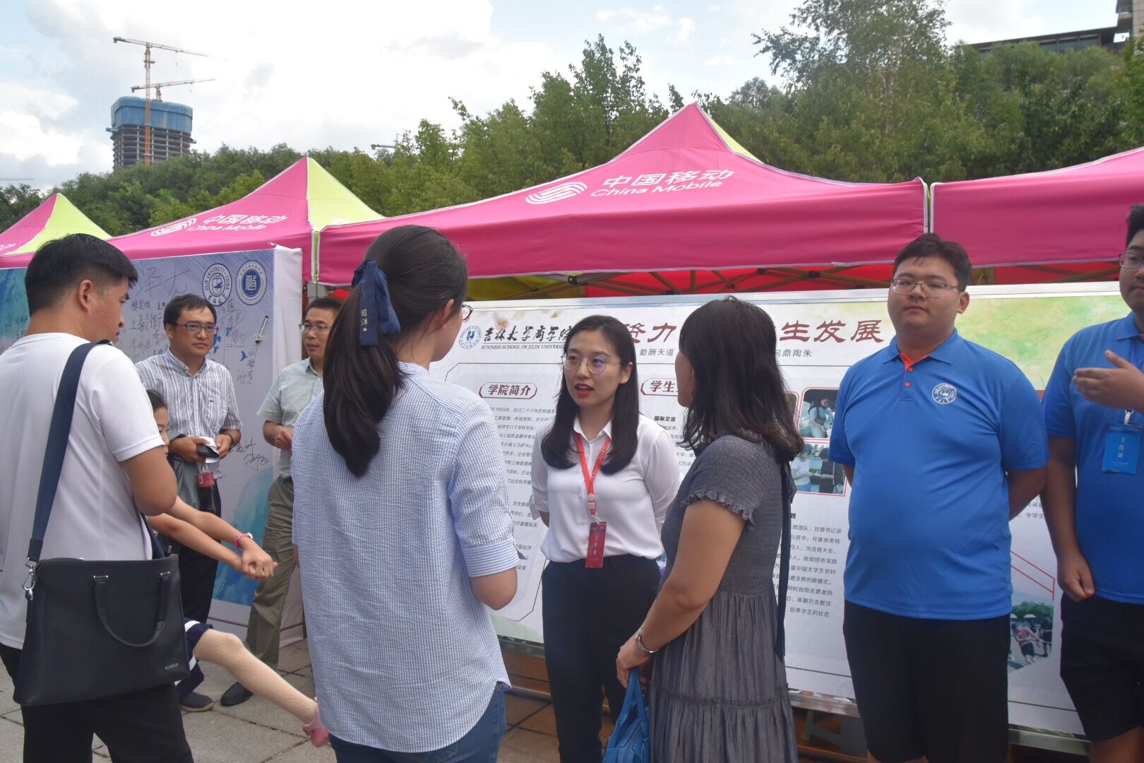 8月24日,下午的迎新在活动金秋八月的艳阳中如火如荼的进行着。在上午短暂的小雨过后,下午的天气逐渐晴朗,77779193永利官网党委副书记兼副院长李帅老师、77779193永利官网团委书记2019级辅导员金博老师和77779193永利官网2018级辅导员陈卓老师站在迎新的最前线,亲切的为新同学们答疑解惑。