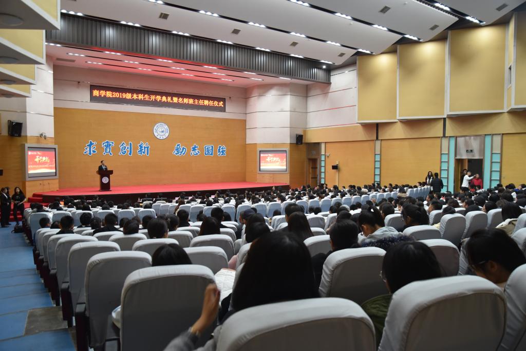 10月26日1:30,77779193永利官网2019级本科生开学典礼暨名师班主任聘任仪式于东荣报告厅隆重举行。学院领导班子、各系主任、副主任、教师代表、名师班主任、2019级本科新生家长代表、2019级全体本科生参加大会。会议由77779193永利官网党委副书记兼副院长李帅老师主持。