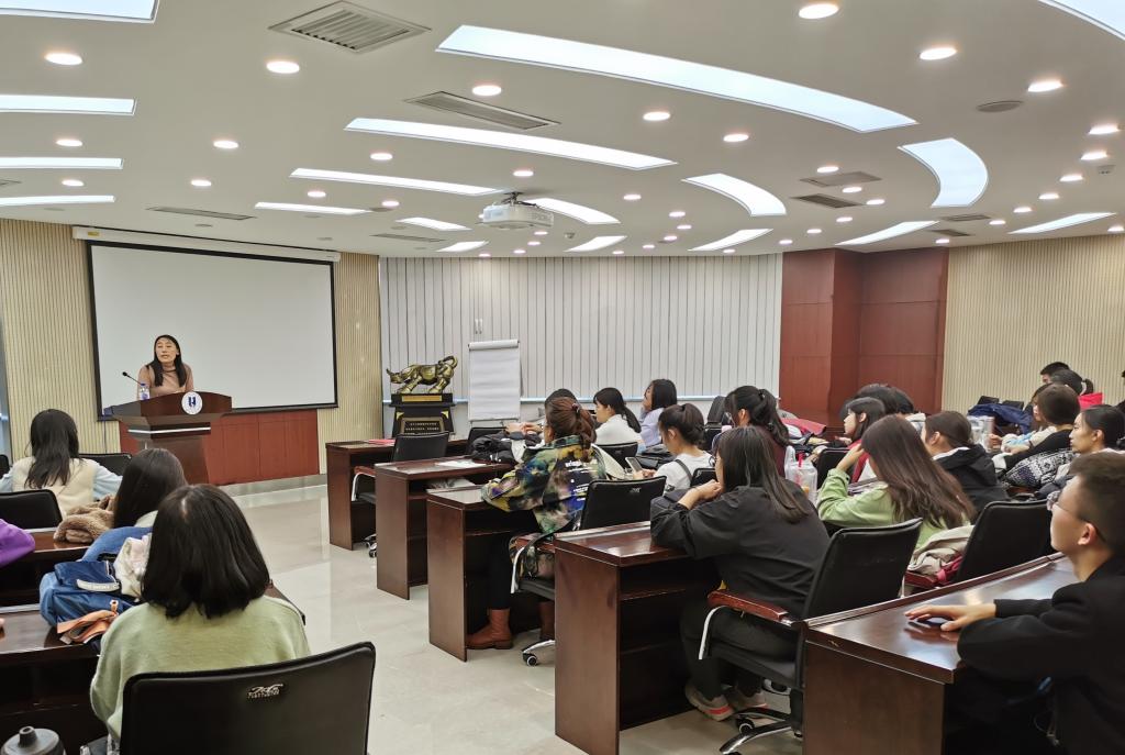 其次,孙老师与同学们分享了学业上的问题。第一个讲到了专业课程的安排与教学计划,分别就数量经济学、财务管理、会计学与信用管理学做了初步的解释与讲解,使同学们对未来的课程与安排有了初步的了解。第二个孙老师鼓励同学们要有四年目标,做好自己的职业规划,与同学们探讨了未来的几个方向,例如:保研、创新保研、出国、就业、创业等等。并分别对其进行了详细的解释,为同学们提出真诚的建议,让同学们对未来的规划有了一定的想法与方向。最后一个,孙老师希望同学们都可以拥有自己的理想,将自己置于更广阔的平台,相信自己的能力,争取自己的机会。