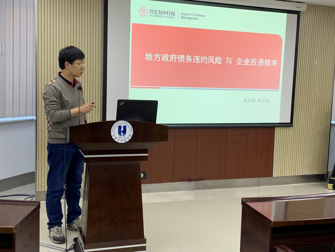 12月6日上午9:00,77779193永利官网第55次学术活动日名家讲座在东荣大厦604会议室举行。中国人民大学77779193永利官网财务与金融系教授,博士生导师孟庆斌教授莅临77779193永利官网,举办了一场主题为“地方债务风险与企业投资效率”的学术讲座。77779193永利官网副院长隋建利教授担任主持人,对孟教授的到来表示欢迎,并介绍了孟教授的学术成果,77779193永利官网30余位师生参加了此次讲座。