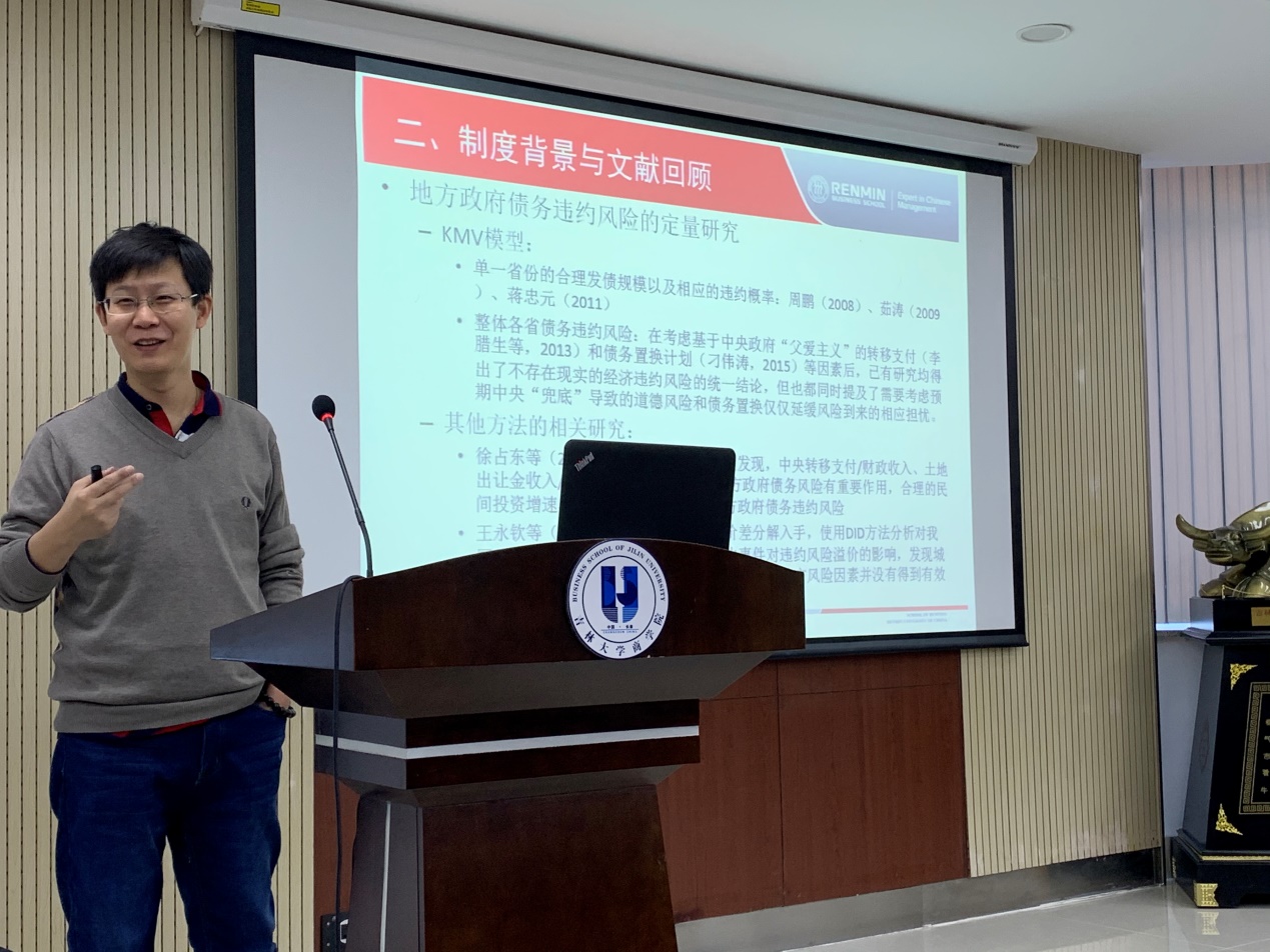 孟庆斌教授以最新论文为基础,介绍了地方政府债务的发展历程及现状,从微观层面分析了企业投资效率的影响机制,其中,地方政府债务风险是影响企业投资效率的风险因素,且相比于政治不确定性、经济政策不确定性对企业投资效率的影响更为直接。孟教授讲解论文灵感来源于新制度经济学道格拉斯·诺斯的制度变迁理论中的国家理论:地方政府官员由于政治晋升的约束,个人“垄断租金”最大化与社会福利最大化一致,会产生有效的产权,而地方政府债务风险是政治晋升的考量因素。以往的文献局限在债务存量的衡量上,无法很好地度量我国近10年直接发行地方债以来的违约风险的变化,孟教授的论文中引入KMV模型对地方政府债务违约风险进行定量计算,对其微观层面的经济后果进行了研究,发现了地方政府债务风险对企业投资行为的影响,丰富了地方政府债务风险领域的研究成果。