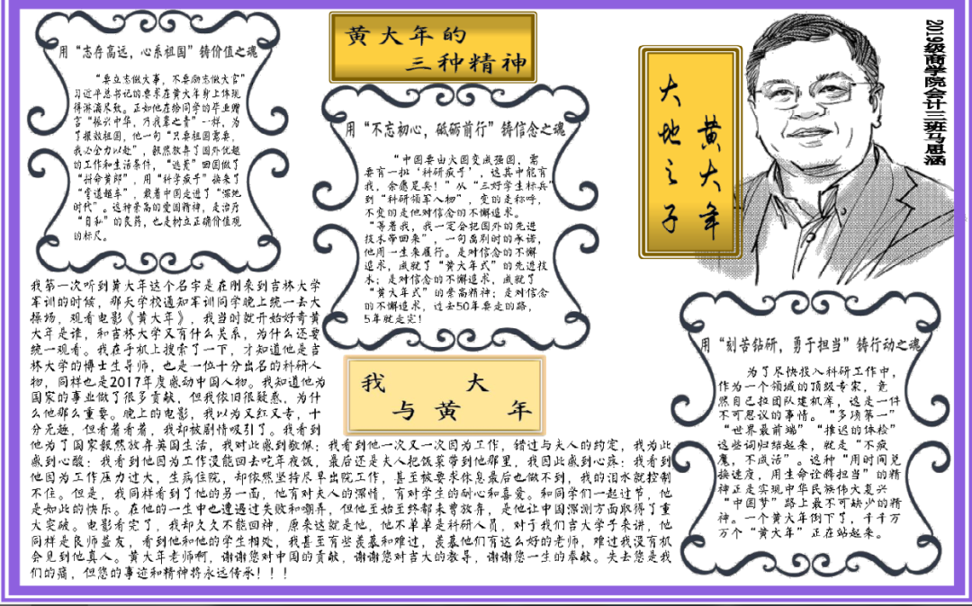 通过此次将两个精神结合学习的活动,同学们加深了对黄大年“心有大我,至诚报国”、 “教书育人、敢为人先”、“淡泊名利、甘于奉献”精神的解读,同时更透彻地理解了“可歌可泣、可圈可点、无坚不摧、无往不胜”的抗疫精神,这种牺牲和奉献精神生动地诠释了中国精神的内涵,是我们打赢疫情防控阻击战的强大精神力量。