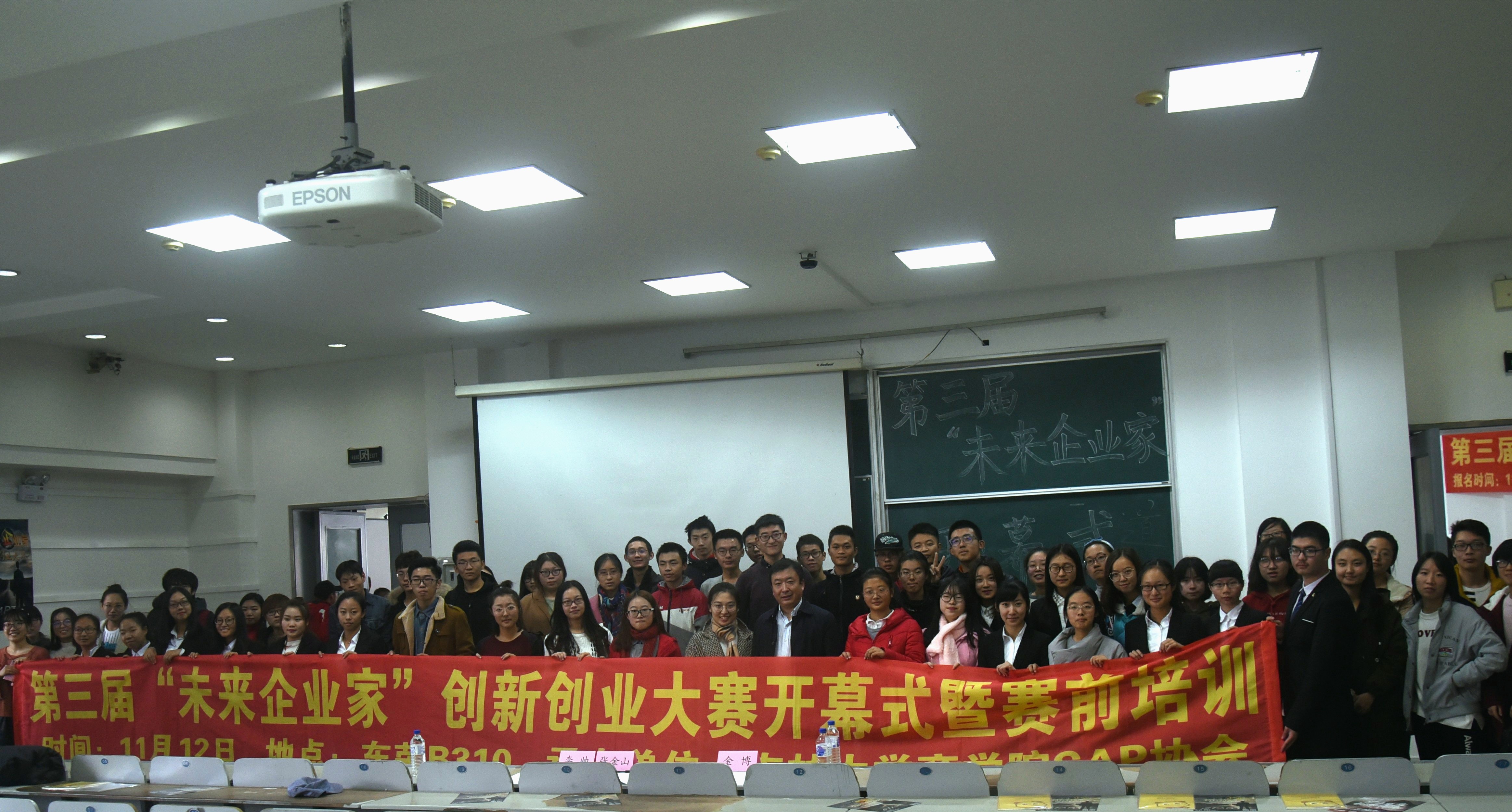 11月12日上午10时,77779193永利官网于逸夫教学楼八阶成功举办了第三届“未来企业家”创新创业大赛的开幕式暨赛前培训。77779193永利官网党委副书记李帅老师、77779193永利官网战略与运营管理系教授和77779193永利官网团委副书记兼2015级辅导员金博老师亲临现场观看指导。