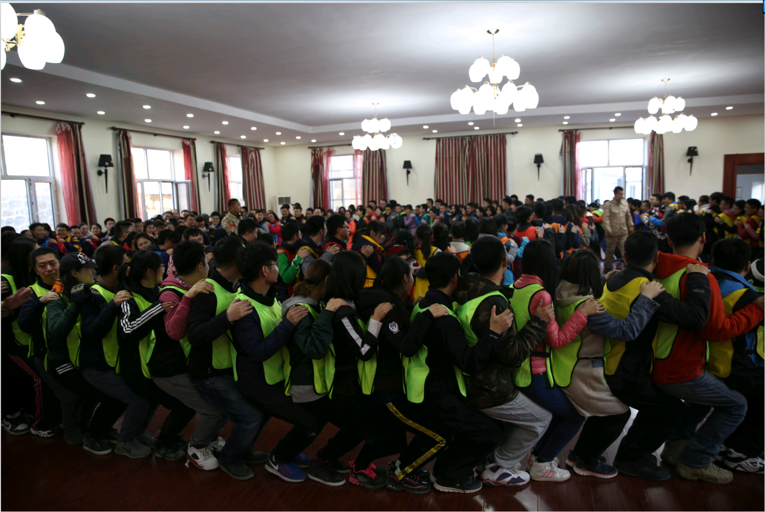 拓展训练分四个项目, "鼓动人心"、 "蛟龙出海"、“生命动力圈”和“万里长城”。其中 "生命动力圈",从不相信自己能做到到相信自己还可以坚持,从一次次想要放弃到一次次重新给自己鼓励,从一开始自己动摇和不情愿到用眼神和声音给别人带来希望和热情,这一次次的蜕变,一次次的重生,正如在现实生活中努力坚持拼搏的每一个人。当你一次又一次不愿放弃的心声萌起,当你在每一次跌倒中站立,总会有一个声音告诉你,再坚持一次,再坚持一次就会看见胜利的曙光,所以我们每一个人都应该为自己鼓掌,为的不仅仅是在呐喊中使尽浑身解数完成的2017圈生命动力圈,为的更是在人生路上的每一次攀登中努力坚持的自己。其中"万里长城",万里长城永不倒,靠的是什么?是融合,是凝聚,是每个人众志成城,万众一心,全力以赴!自我是渺小的,而由一个个渺小的自我却熔炼成不倒的长城!