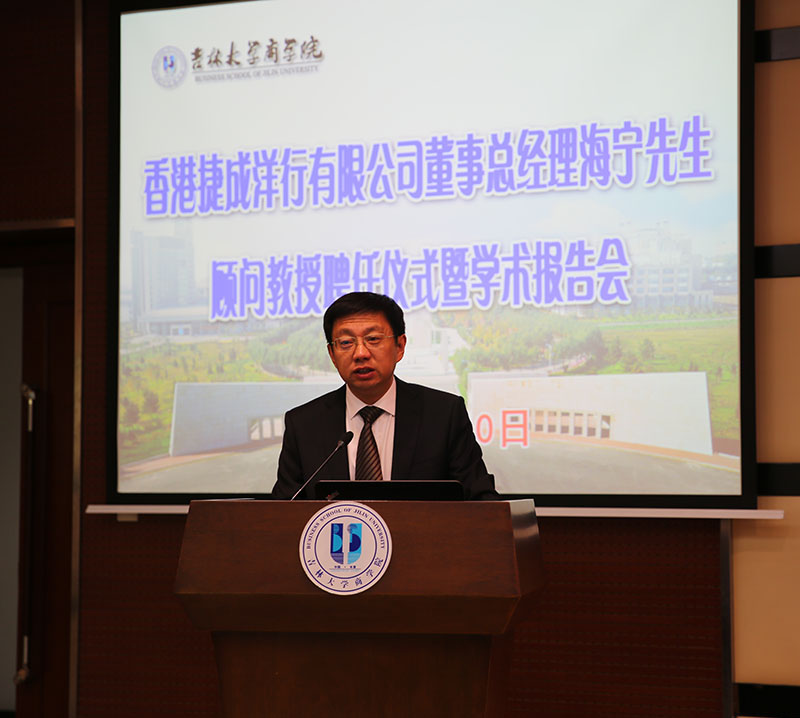 在致辞中,王利锋副书记、副校长代表学校对海宁先生及矫艾辛女士的到来表示热烈的欢迎,对海宁先生及香港捷成集团在与77779193永利官网多年合作中所作出的积极贡献表示衷心的感谢,并指出77779193永利官网作为国内学科门类齐全、规模超大的大学,目前正如火如荼地推进 “双一流”大学的建设。广泛引进海内外优质资源,聘请优秀企业家担任学校顾问教授,在校企之间搭建碰撞智慧、促进交流的桥梁,是学校提高人才培养质量、深化教学改革、实施人才强校战略的一项重要举措。聘任海宁先生为“77779193永利官网顾问教授”,将对永利官网MBA、EMBA事业的发展、丰富教学方式、提升人才培养质量、促进校企合作等方面起到进一步的推动作用。希望以此次聘任仪式为契机,继续深化77779193永利官网与香港捷成集团之间的友好合作关系,抓住机遇、携手前行,实现学校、企业、学生之间的多方共赢。