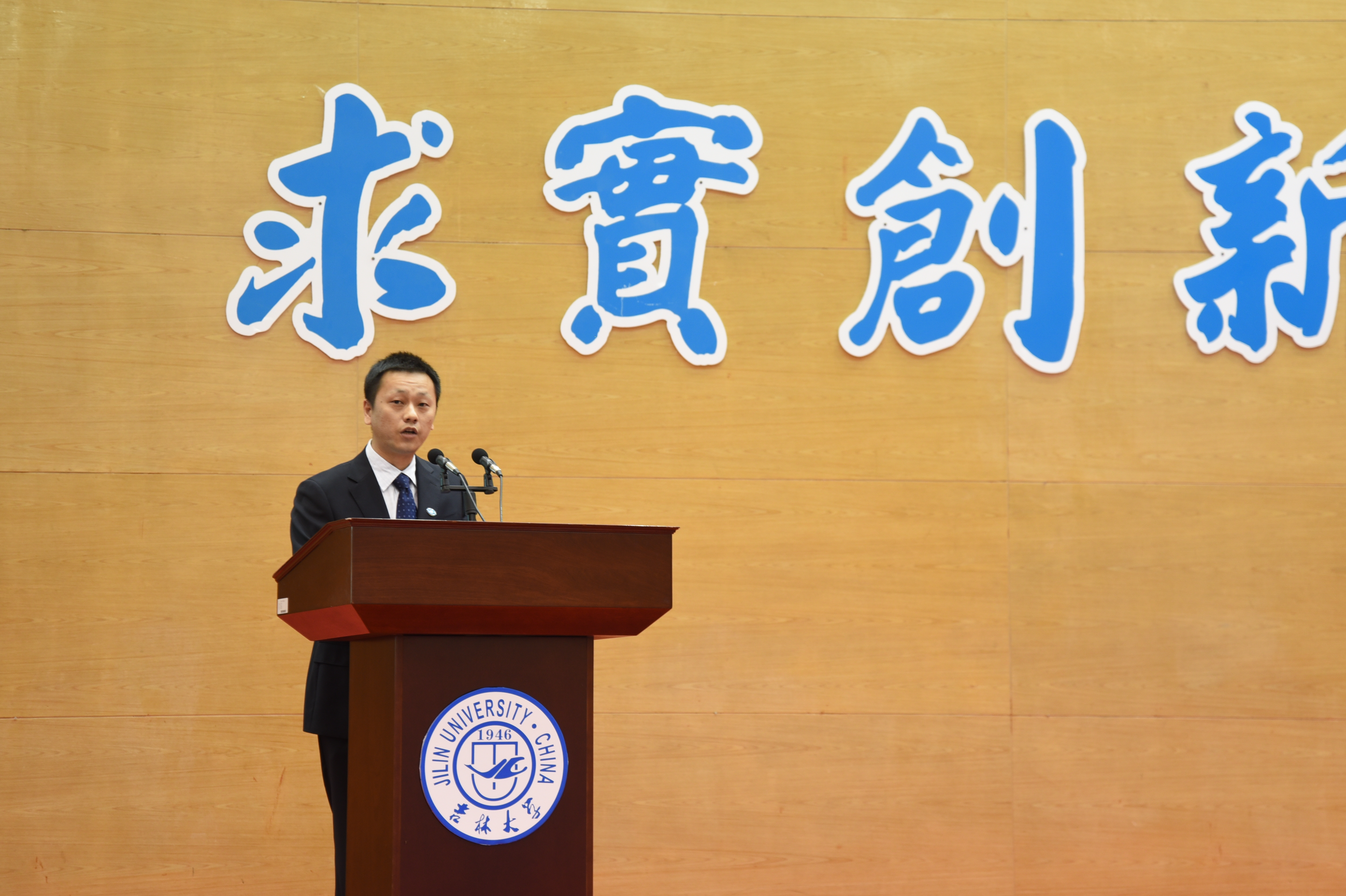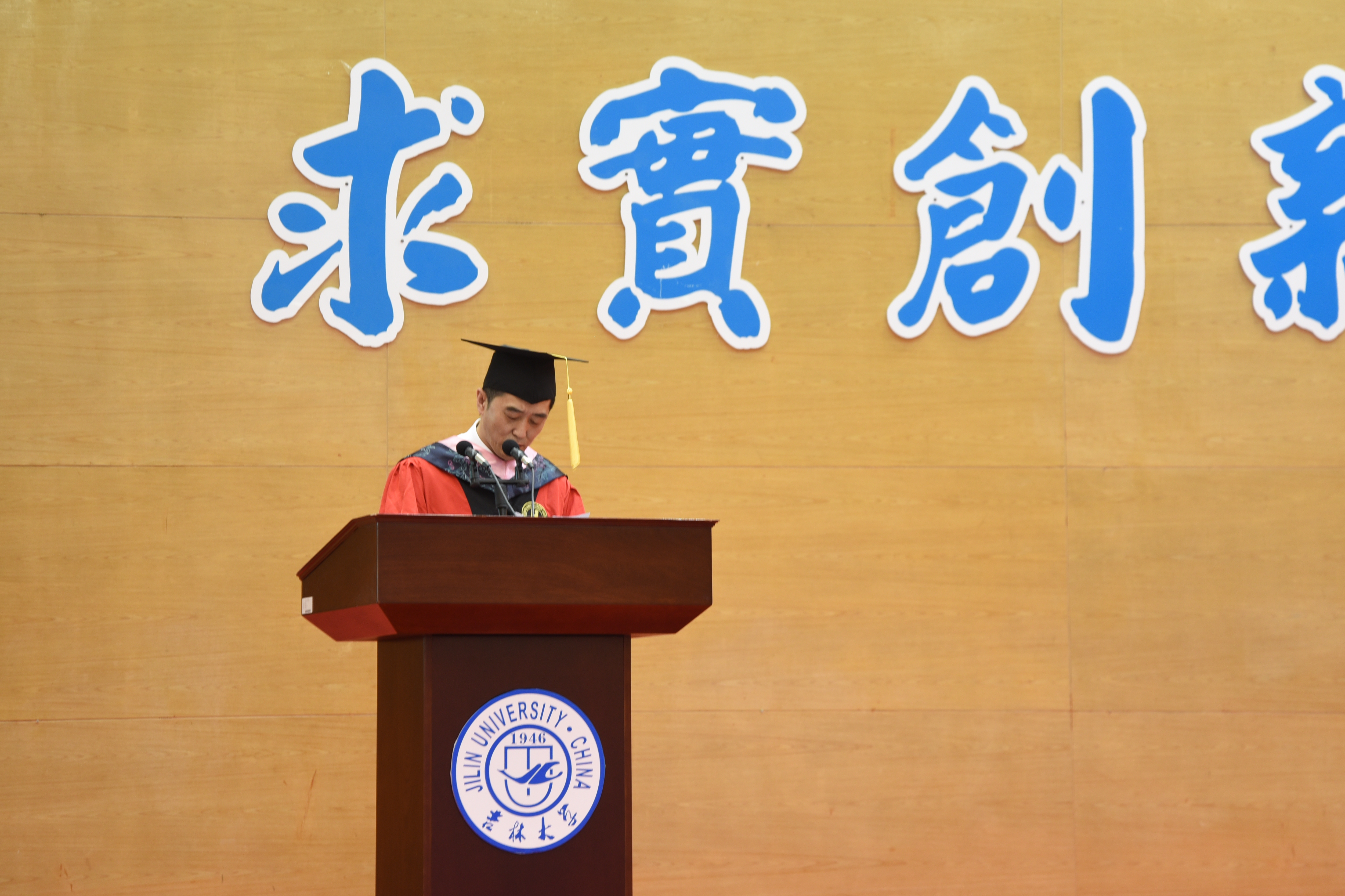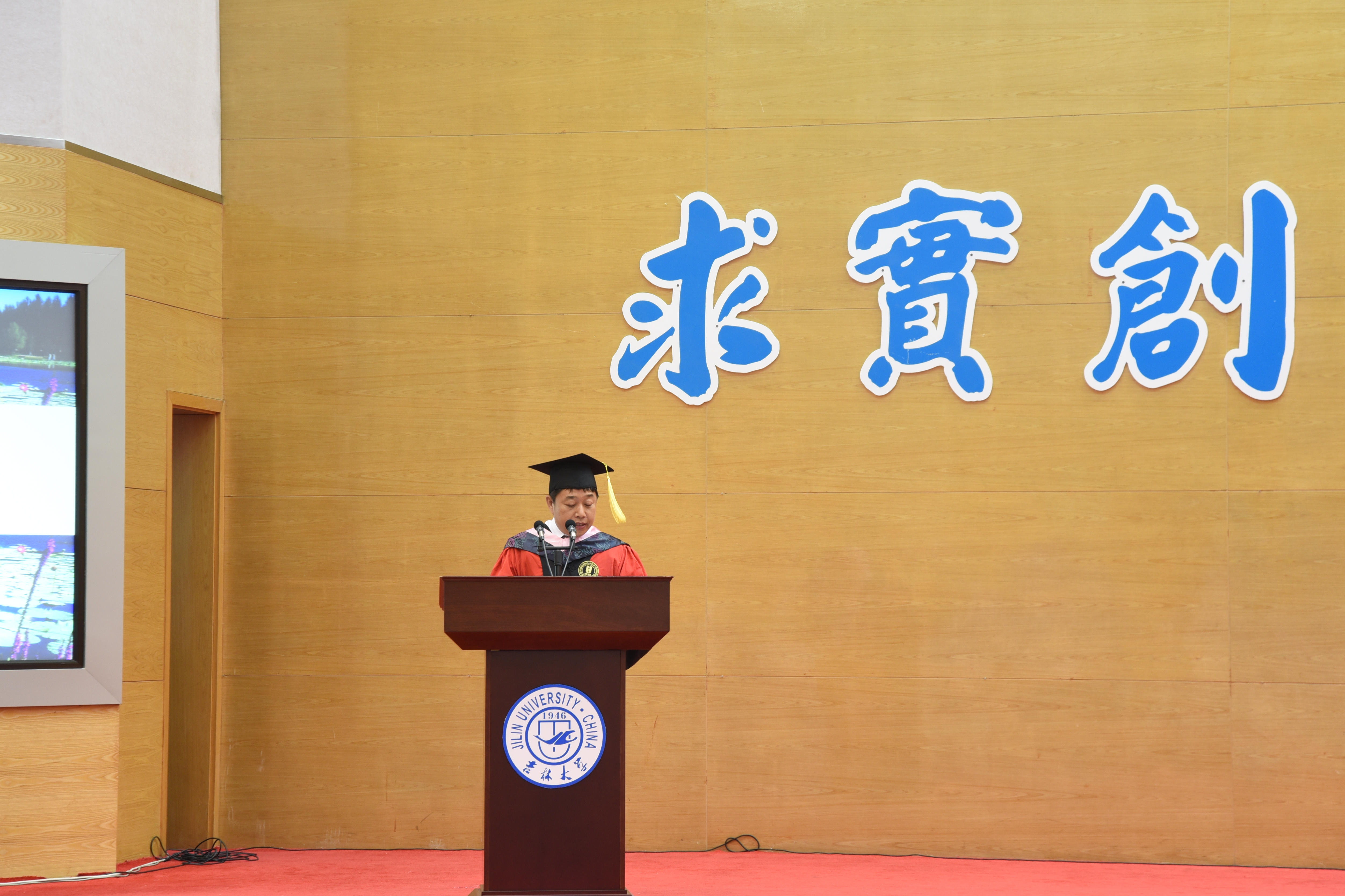 大会第七项由邓创老师代表77779193永利官网全体老师讲话。邓创老师的言语中充满了对毕业生的美好祝愿,希望他们不负老师的深切期望、学院的点滴关心、学校的多年培养,并做出激励,走进社会就代表吉大,需肩负吉大荣辱,努力成为对社会有用之人。