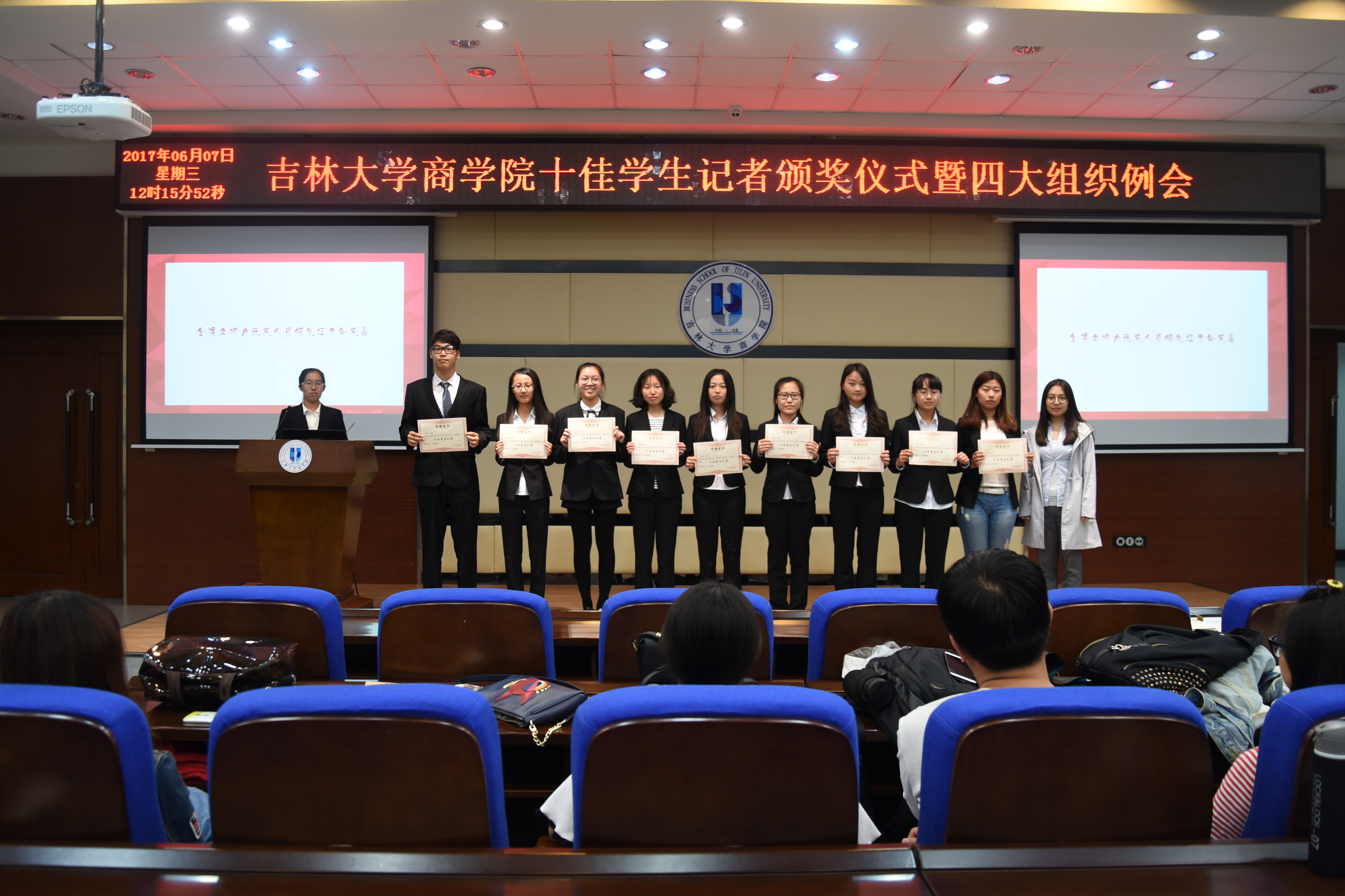 王彦慧、荆婧、赵博琰、董月华、刘美言、项安琪、徐斌、高英铭、李静、盛伟等人获得十佳学生记者称号。