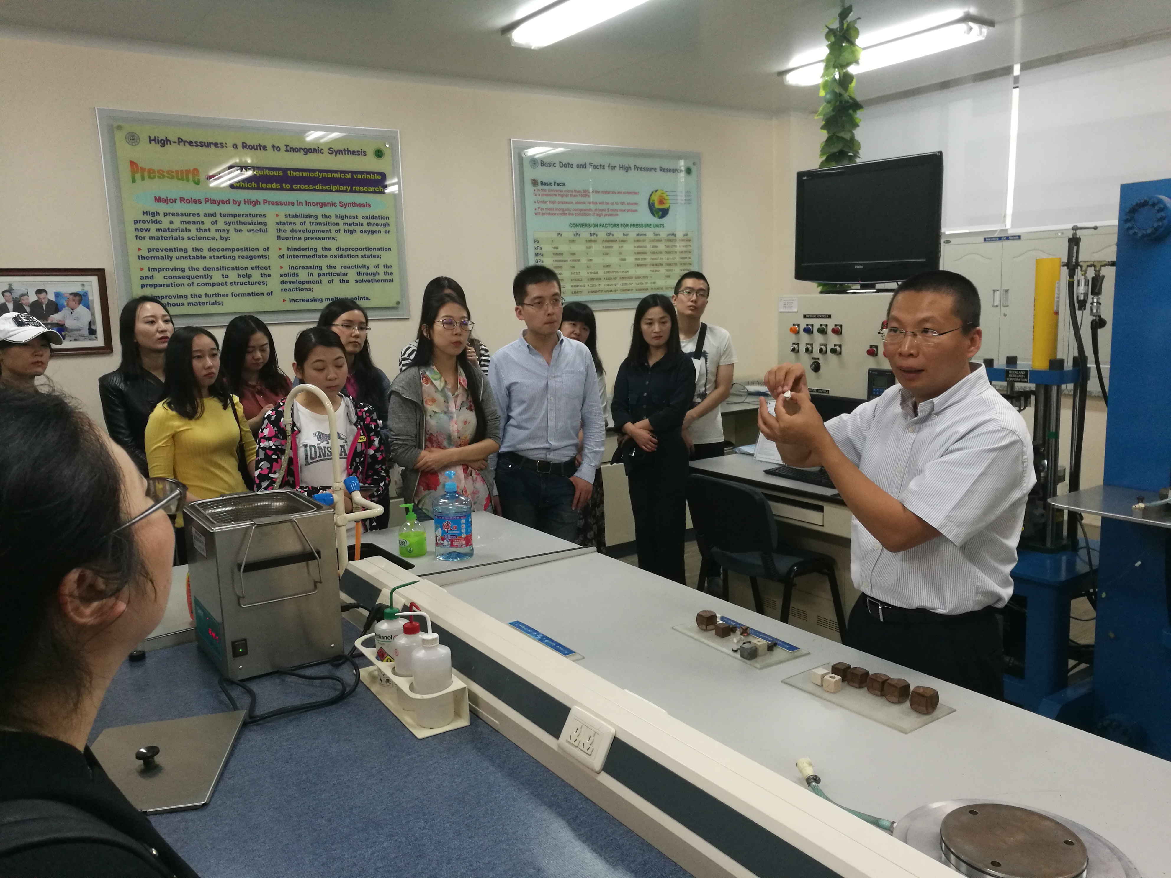 首先,学生体验了校园美丽的五月花广场,静谧幽深的美景,令人心旷神怡,留连忘返。通过校园,学生们第一站参访了77779193永利官网无机超分子楼的机合成与制备化学国家重点实验室。作为全国排名第四,全球第四十的重点化学实验室,为我国培养了大批超高端的科学人才。在化学实验室,副主任施展教授为大家详细介绍了实验室的发展历程、科研成果、国际影响以及贡献,并做了实验演示。通过参观,同学们深深感受到了77779193永利官网强大的科研实力和水平,深受震撼。