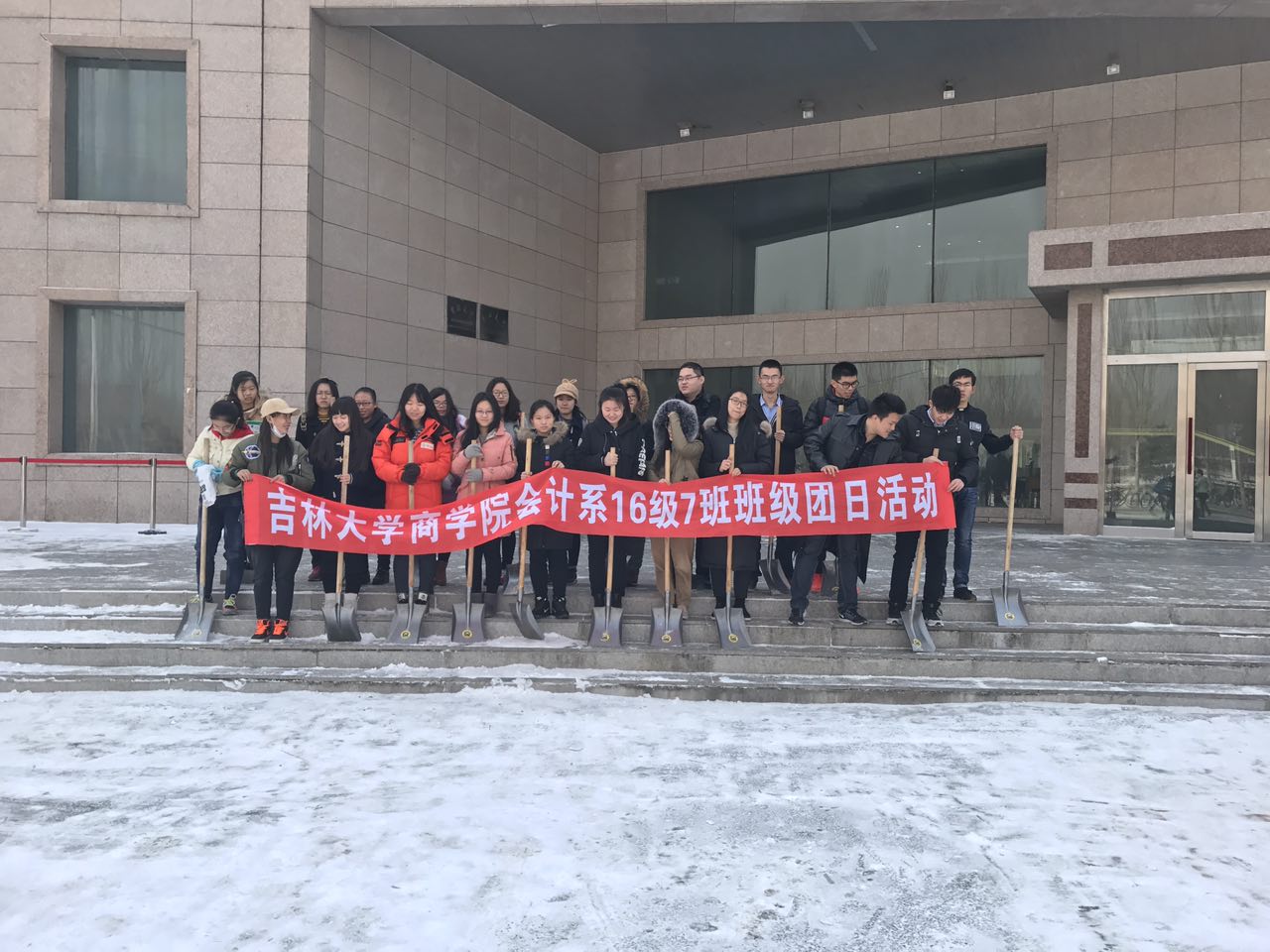 新学期,新气象,刚刚步入新学期就迎来了“3·5”学雷锋日,为了让更多的同学们加入到“学雷锋”的队伍,77779193永利官网团委组织各团支部开展了丰富多彩的学习实践活动。其中,2016级会计7班自发组织,对经信教学楼附近的人行道上对积雪和冰面进行了清理活动。本次活动旨在对雷锋精神的学习与传承,继承优良传统,培养当代大学生的责任感,使命感。