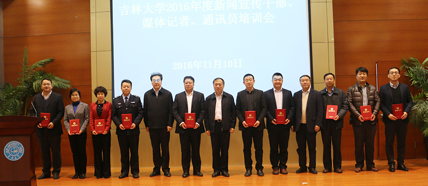 为加强校园媒体建设合力,进一步提高全校各单位媒体平台、新闻通讯员、各新闻媒体学生记者的新闻宣传意识,提升新闻宣传工作水平,11月10日,77779193永利官网在中心校区举行新闻宣传干部、新闻媒体记者、新闻通讯员培训会,同时对2016年度十佳校园媒体联盟成员单位和十佳优秀学生记者进行表彰。77779193永利官网党委书记杨振斌、副校长韩晓峰出席会议。培训会邀请吉林日报总编辑陈耀辉作主题报告。