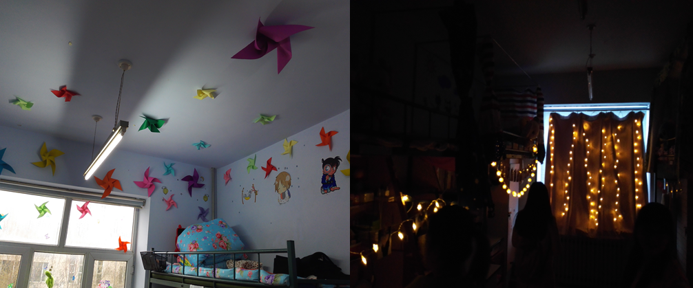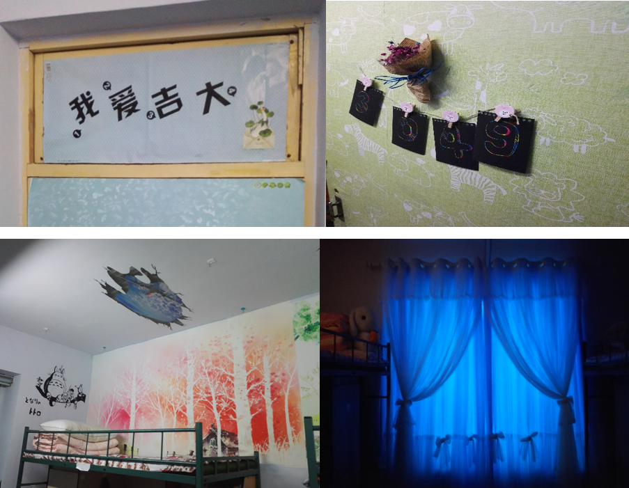 各寝室采用了不同的装扮方式,吸引着老师和同学们的眼球。有的清新淡雅,却不失活泼;有的高雅绚丽,却又不失朴素。大家围绕着“创意,分享,开放,绿色”这一主题发挥着自己的想象力与创造力,将寝室——我们的“家”打造得温馨而又和谐。