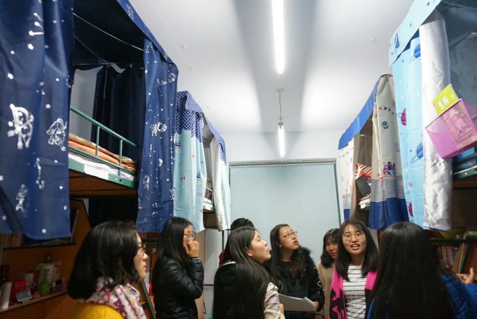 在按部就班查寝的同时,生活部的成员们也在敲叩每扇宿舍木门后,收获不小的惊喜。除了按照要求对地板和桌面做了打扫和清理,每间宿舍的装饰风格也各不相同。有在灯上吊着千纸鹤的,也有选择在墙面上贴满温馨壁纸的……美好的宿舍环境让负责检查的同学们也收获了愉快的工作心情。