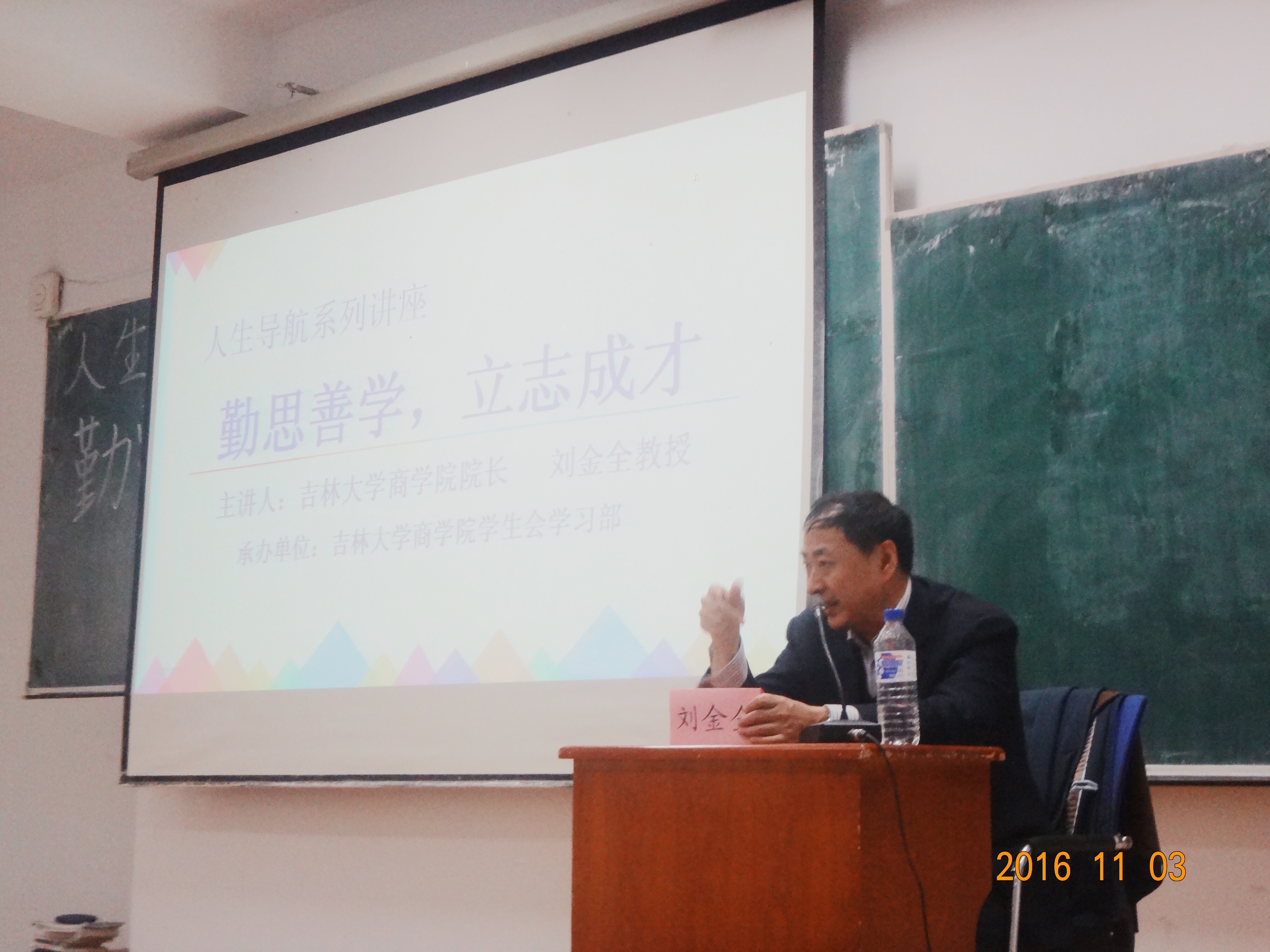 11月3日13:30,77779193永利官网人生导航系列讲座第三十五讲在三教一阶如期举行。77779193永利官网院长刘金全教授作为主讲嘉宾,为所有的大一同学做了以“勤思善学,立志成才”为题的专题报告。