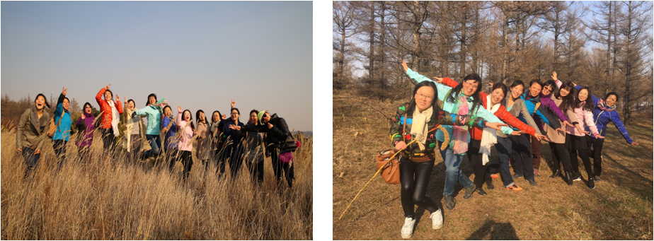 走过刚刚收割过的田埂,穿过一片密林,已然到达山顶,极目远眺,天空朗阔、山色深秀,顿觉豁然开朗,心旷神怡。教师们在欣赏美景的同时也感受到了吉林省新农村变化的缩影。