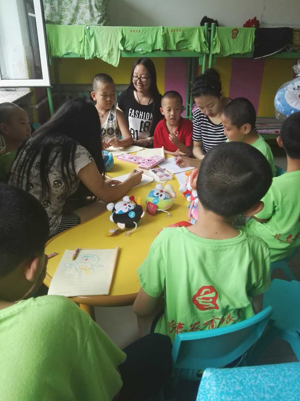 在了解特殊教育及特殊儿童的相关资料之后,四位同学为育龙特殊儿童语言康复培训学校的孩子们用心准备了一些小礼物。在校长的带领下,探望了长拖班级的20位小朋友,对“星星的孩子”等特殊儿童的现状有了更清晰的了解。这个长拖班级的孩子,年龄在6到12岁,患有自闭症、唐氏综合症、发育迟缓等病症。同学们带领这些小朋友们做游戏、画画,并给他们讲故事,赠送玩具。虽然有的小朋友理解力和自控力存在一定的迟缓,但是在育龙学校的老师们的帮助和带领下,小朋友们都有了可喜的进步。