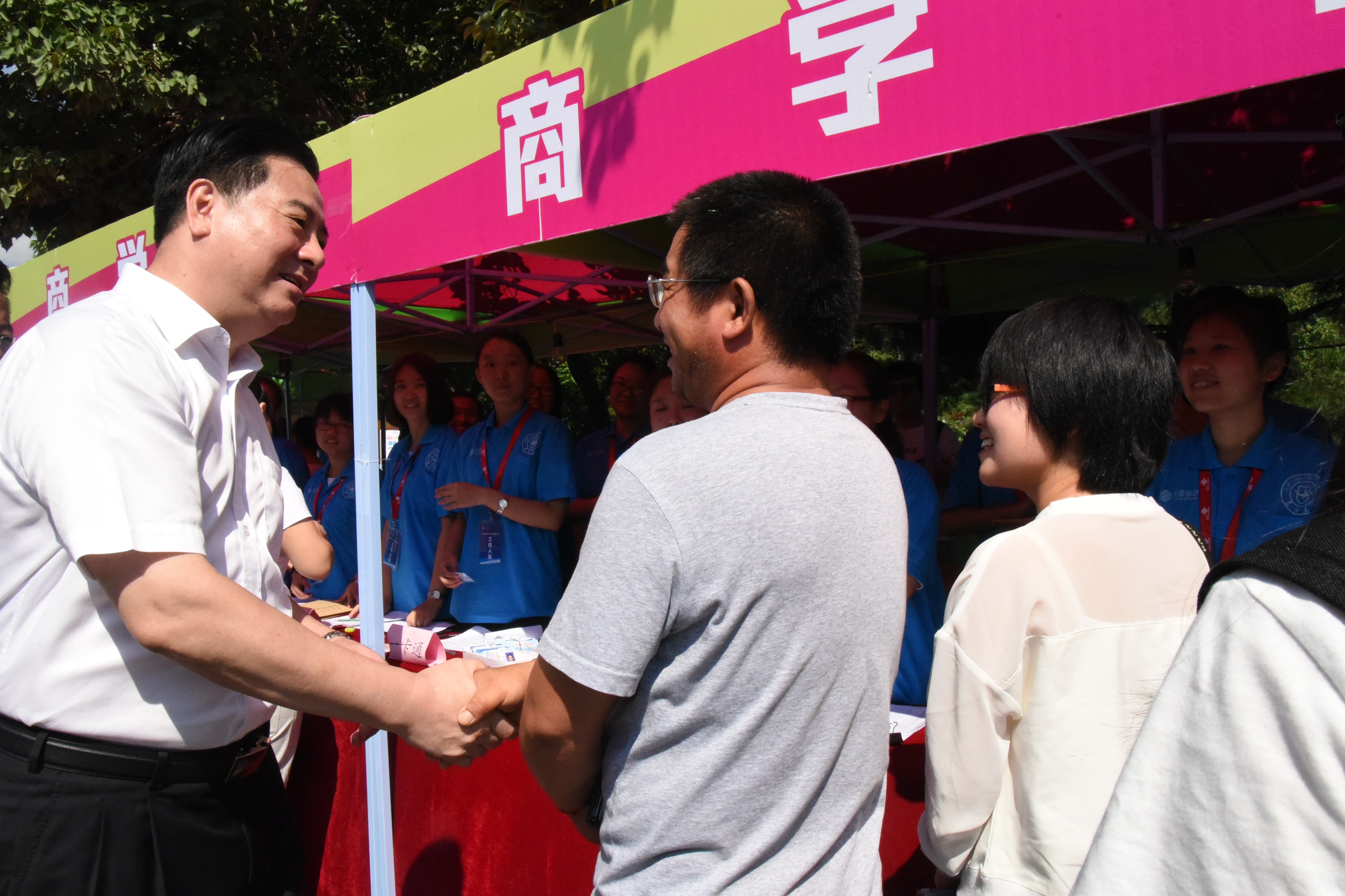 8月20日上午,77779193永利官网李元元校长百忙之中亲临一线慰问前台工作人员。首先李校长环绕了整个五月花广场的迎新工作点,来到77779193永利官网的迎新台前,询问我院新生的注册情况,视察了我院新生报到流程。李校长一直活跃在迎新现场,深入到同学们之中。迎新中,李校长指出大家工作中的问题和不足,同时也鼓励大家要做好后勤保障工作,为新生展现良好的商工风貌并传播良好的校园风气。