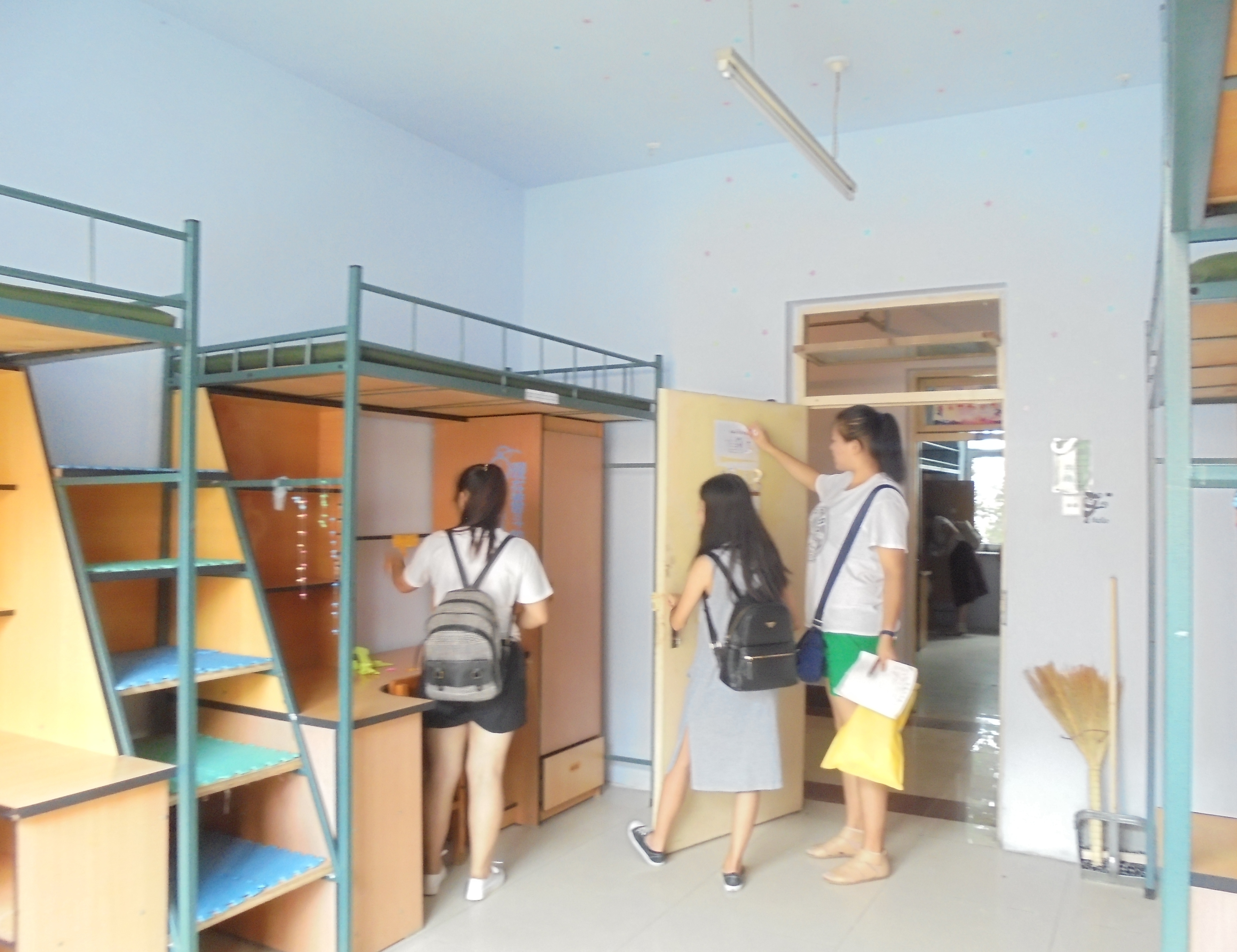 8月18日上午8点,为了让16级大一新生们顺利入住大学宿舍,生活部和维权质保部的参与迎接新生的同学们在大学城二公寓和三公寓对新生宿舍进行了最后一次全面检查。
