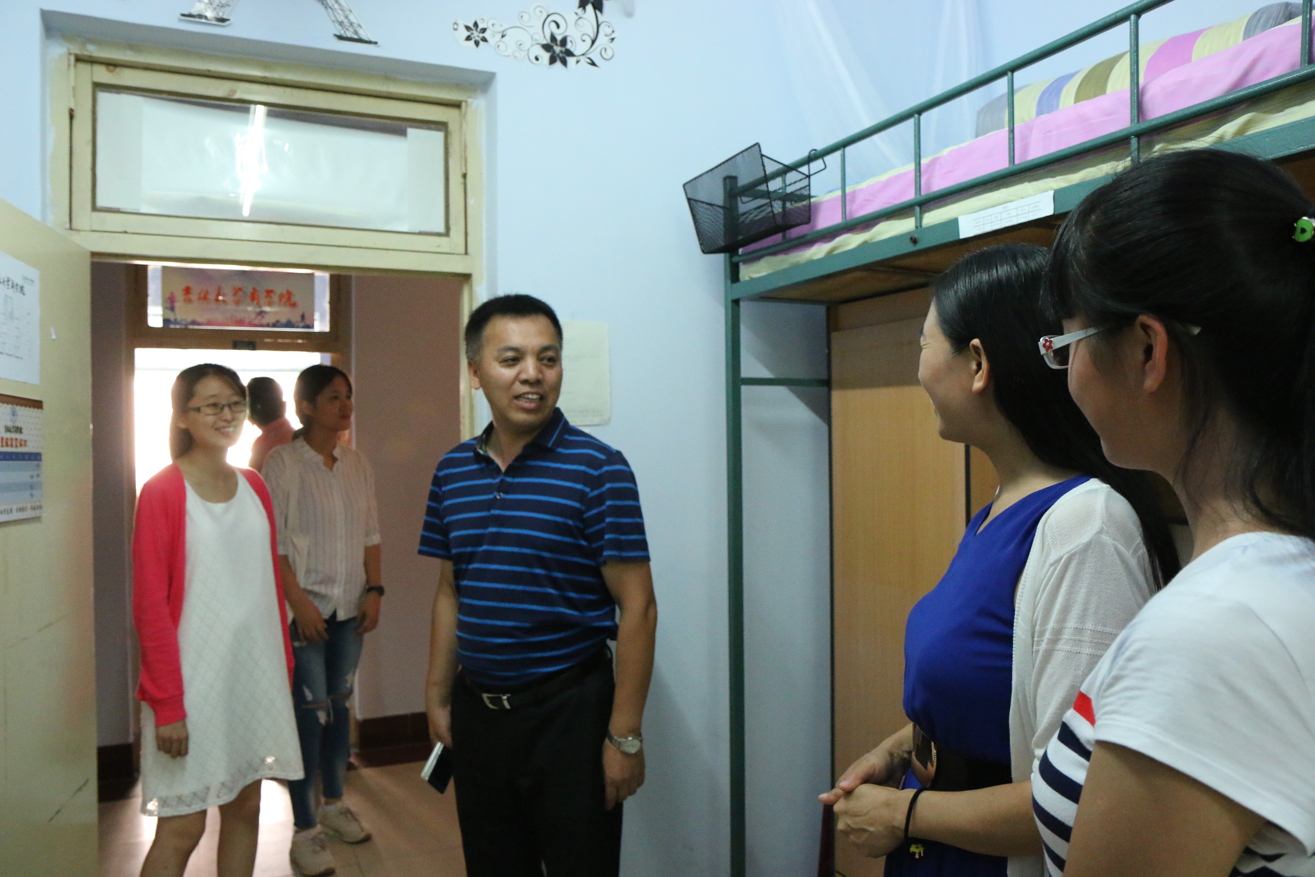 8月21日下午1点,77779193永利官网党委副书记范庆文老师来到大学城新生宿舍处慰问来自全国各地的2016级77779193永利官网新生,同行的还有77779193永利官网团委书记、2015级辅导员荣诗达老师、77779193永利官网2013级辅导员金博老师,2014级辅导员甄宓老师,2016级辅导员刘天目老师以及负责引导2016级新生的导员助理们。
