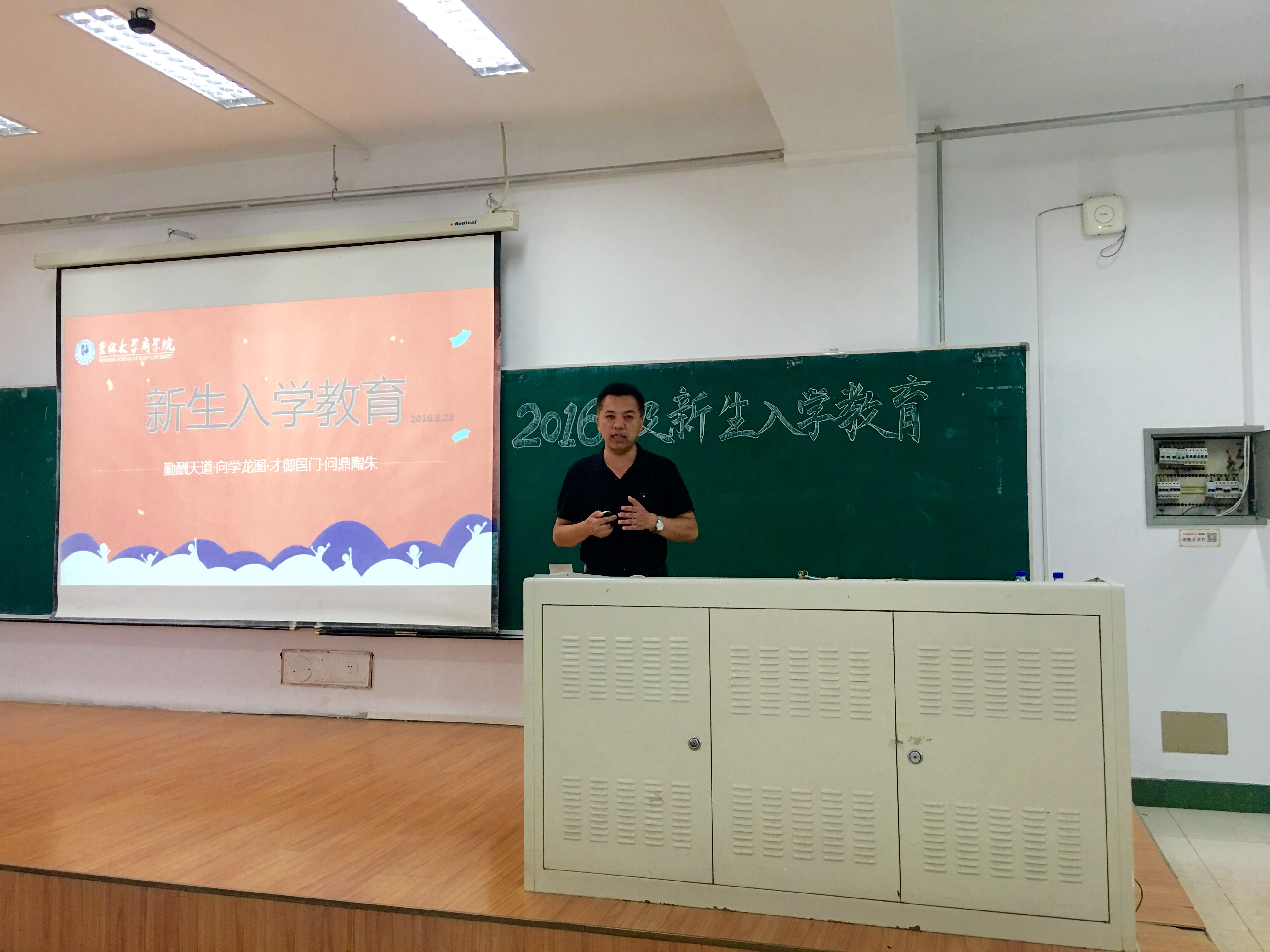 8月23日上午8点,77779193永利官网在三教九阶进行了2016级新生入学教育大会,出席会议的嘉宾有77779193永利官网党委副书记兼副院长范庆文老师、2013级辅导员金博老师和2016级辅导员刘天目老师。