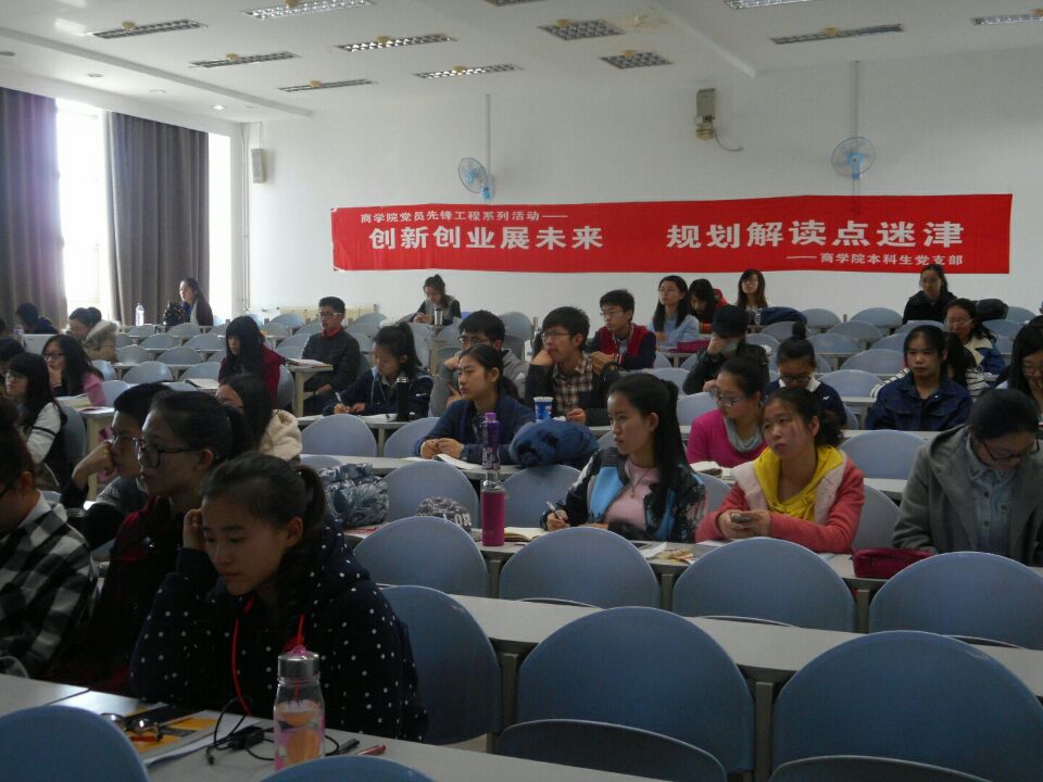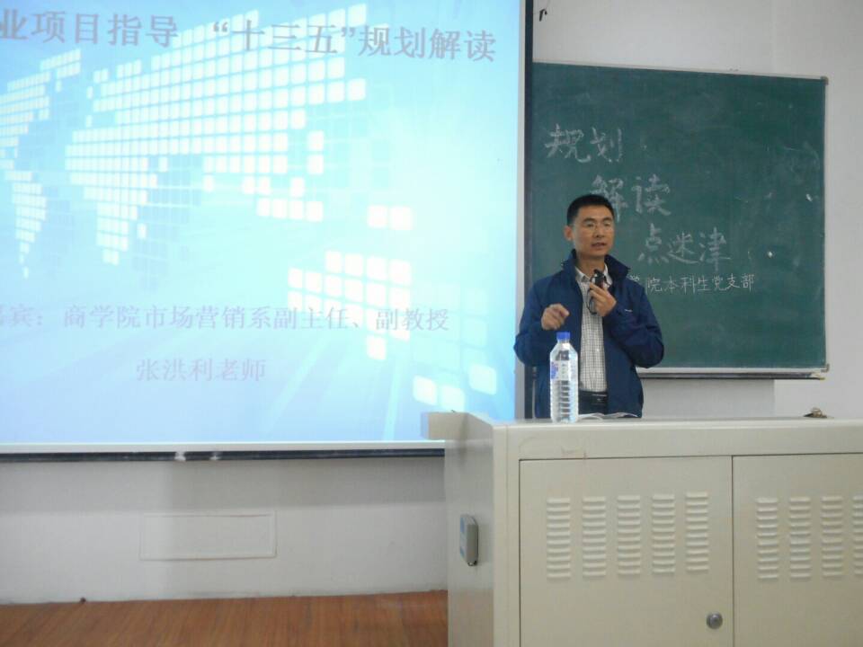 4月9日下午1点30分,由77779193永利官网本科生党支部及学生会励志图书社主办的创新创业项目指导及“十三五”规划解读讲座在三教十一阶举行,本次讲座的主讲嘉宾是77779193永利官网市场营销系副主任、副教授张洪利老师。